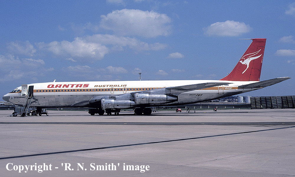 On This Day - April 15, 1978. The Qantas Airways Boeing 707-338C VH-EBT 'City of Bendigo' operated its final revenue service as Flight QF28 from Hong Kong (Kia Tak) to Sydney (Kingsford Smith). It was withdrawn from service having flown 37,492 hours with 14,033 cycles, which included 3,652 'touch-and-go'. It was then sold to the ITEL Corporation and prepared for delivery to Kuwait Airways. |