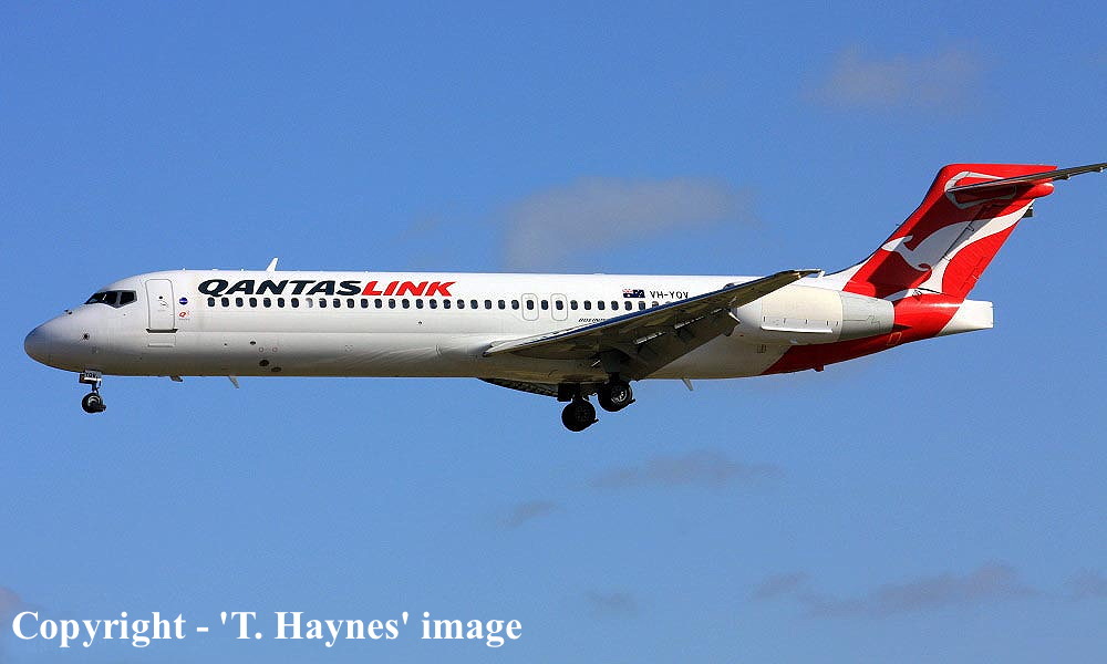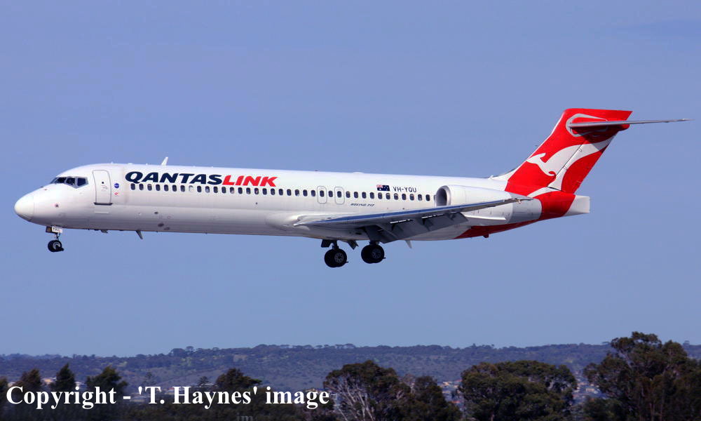 On This Day - April 15, 2014. The QantasLink Boeing 717-2BL N928ME arrived at Adelaide (West Beach) having completed its delivery flight from the United States (Jacksonville, Florida). It was reregisterd as VH-YQW and had special promotional decals applied to it during its pre-service maintenance. This aircraft was the last Boeing 717 built by McDonnell Douglas. |