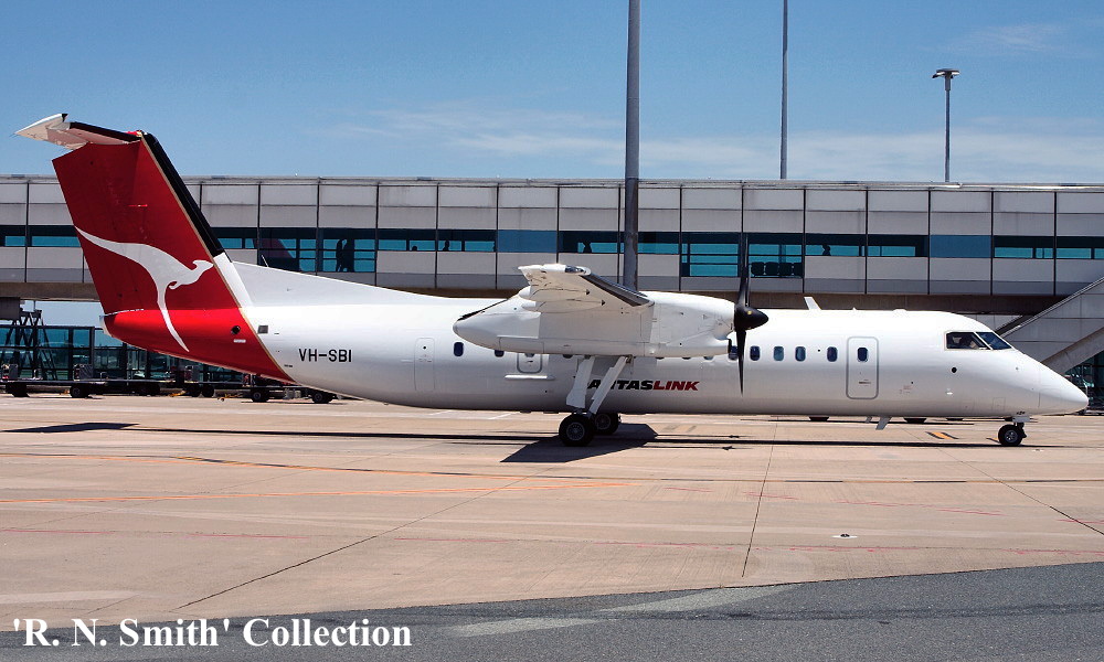 On This Day - August 11, 2015. The Eastern Australia Airlines / QantasLink Bombardier DHC-8-315Q VH-SBI was ferried Brisbane - Townsville (Queensland) as Flight QF6713, for repainting by Flying Colours into the 'Jetstar' livery in preparation for its deployment to New Zealand. |
