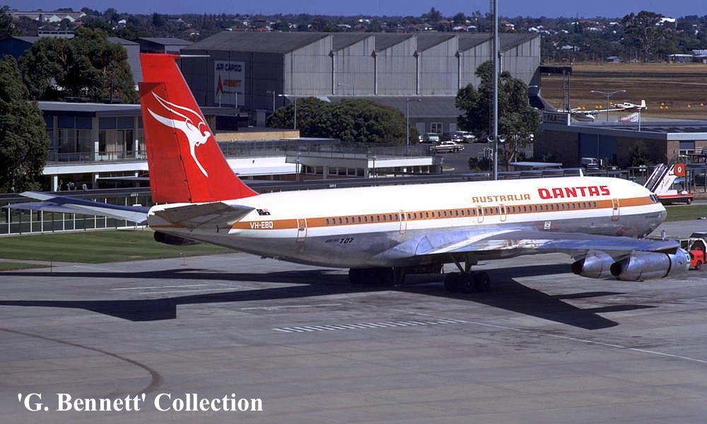 On This Day - December 10, 1971. The Qantas Airways Boeing 707-338C VH-EBQ 'City of Ballarat' was rolled out at Sydney (Kingsford Smith) in the new 'ochre' livery. |