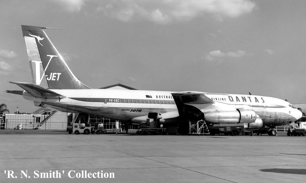 On This Day - December 17, 1961. The Qantas Airways Boeing 707-138B VH-EBC 'City of Canberra' was rolled out at Sydney (Kingsford Smith) in the airline's new 'V-Jet' livery. |