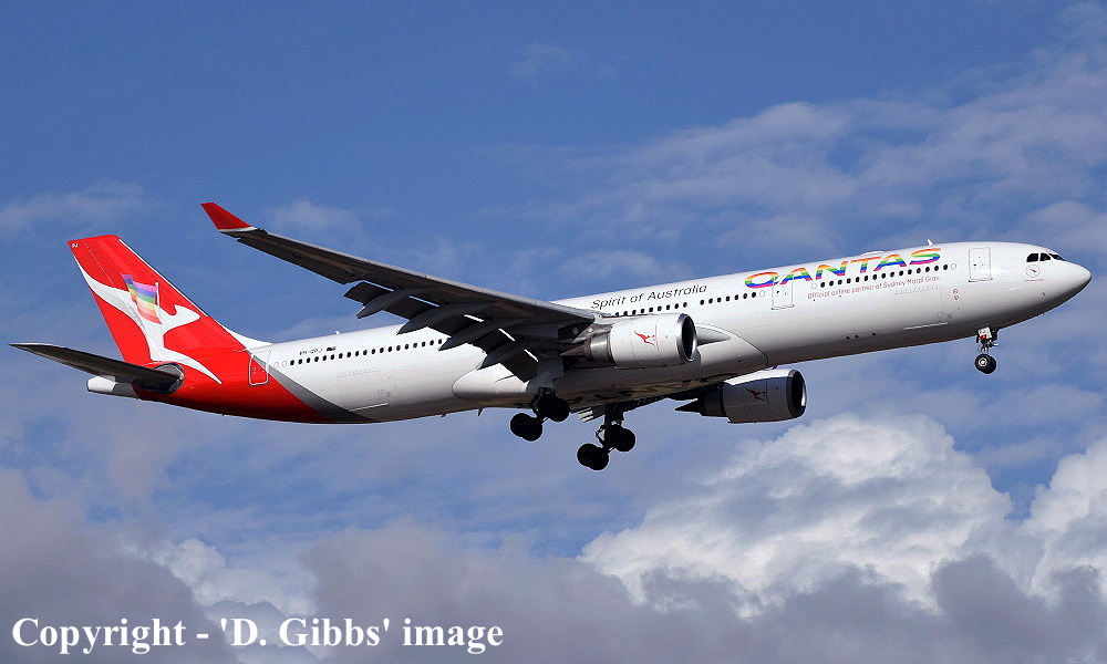 On This Day - February 10, 2017. The Qantas Airways Airbus A330-303 VH-QPJ 'Port Stephens' returned to service, operating Flight QF433 from Sydney (Kingsford Smith) to Melbourne (Tullamarine) after having the 'Sydney Mardi Gras' titles and logo applied the previous day. |