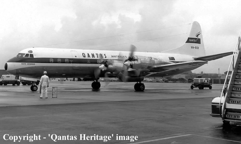 On This Day - February 10, 1961. The Qantas Airways Lockheed 188C VH-ECD 'Pacific Enterprise' departed Sydney (Kingsford Smith) on its ferry flight to the United States (Burbank, California), to undergo wing and engine mount modification work to be undertaken by Lockheed under its (LEAP) program. |