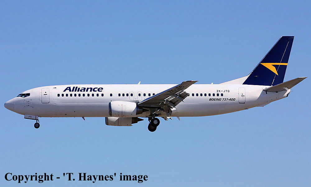 On This Day - February 10, 2012. The Airwork Flight Operations Boeing 737-476 ZK-JTQ, wet-leased to Alliance Airlines to operate 'fly in / fly out' services in Western Australia, departed Auckland (New Zealand) on its ferry flight to Perth (Western Australia) as Flight AWK001. |