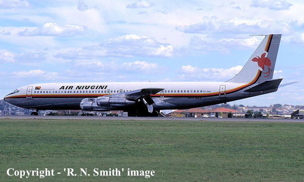 On This Day - January 02, 1977. The ex Qantas Airways Boeing 707-338C VH-EBU, now owned by ITEL and leased to Air Niugini as P2-ANH, entered service with the airline, operating Sydney (Kingsford Smith) to Port Moresby (Papua New Guinea). |