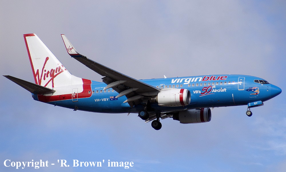 On This Day - January 09, 2012. The Virgin Blue Airlines Boeing 737-7FE VH-VBY 'Virgin-ia Blue' was ferried from Brisbane to Townsville as Flight DJ9071 for repainting by Flying Colours into the 'Virgin Australia' livery. It was the first Boeing 737-700 series to acquire the airline's new corporate livery. |