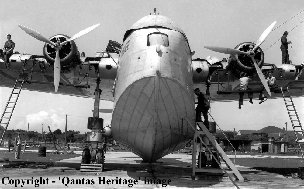 On This Day - July 13, 1942. Ownership of the Qantas Empire Airways Short S.23C 'Empire' Class flying boat VH-ABF 'Cooee' was transferred to British Overseas Airways Corporation. This aircraft had been isolated in the western sector of the 'Horsehoe Route' in February 1942, due to Japanese war activities in south-east Asia. It was reregistered as G-AFBL. |