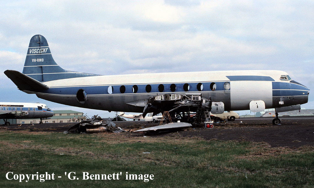 On This Day - July 22, 1976. The Ansett-ANA Vickers Viscount 747 VH-RMO was finally broken-up for scap at Melbourne (Essendon). Its intended sale to Pan Indonesian Airlines many years earlier did not eventuate, and the aircraft sat in the Essendon Airport graveyard in a hybrid livery. |