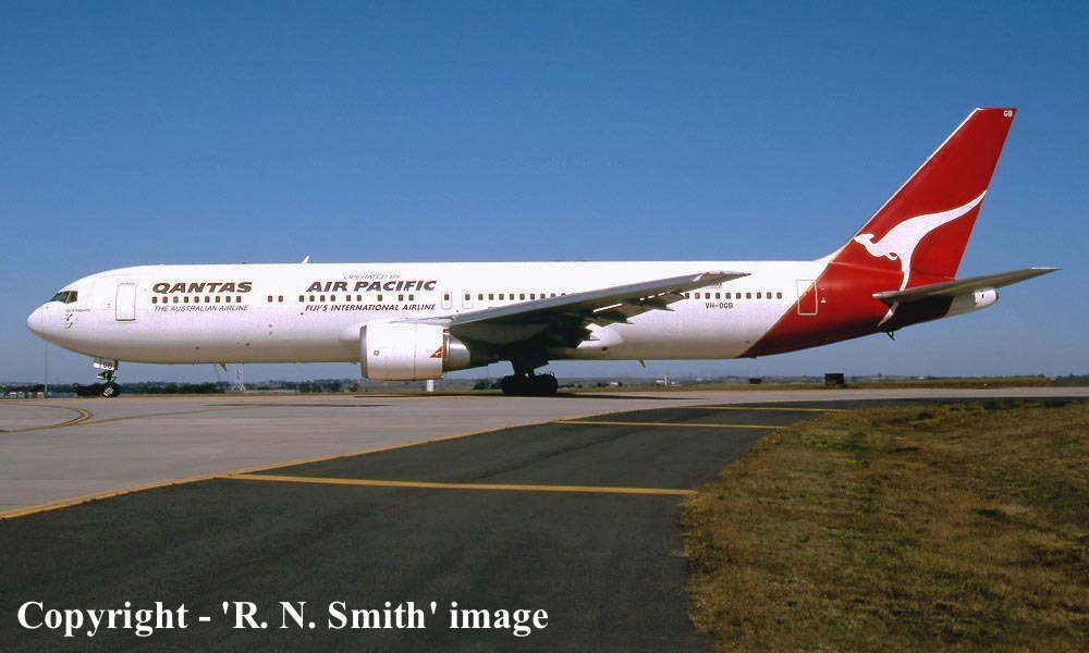 On This Day - July 22, 2007. The Qantas Airways Boeing 767-338ER VH-OGB 'City of Kalgoorlie', having been wet-leased to Air Pacific for 1 month and carrying 'Air Pacific' titles, operated its first service, operating Flight FJ920 from Sydney (Kingsford Smith) to Nadi (Fiji). |