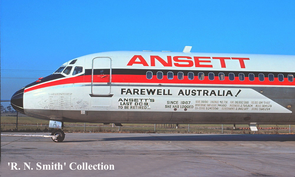 On This Day - June 17, 1982. The Ansett Airlines Douglas DC-9-31 VH-CZA operated the airline's final Douglas DC-9 revenue service as Flight AN56 from Launceston (Tasmania) to Melbourne (Tullamarine). To mark its retirement a special inscription was painted on the forward fuselage of the aircraft. |