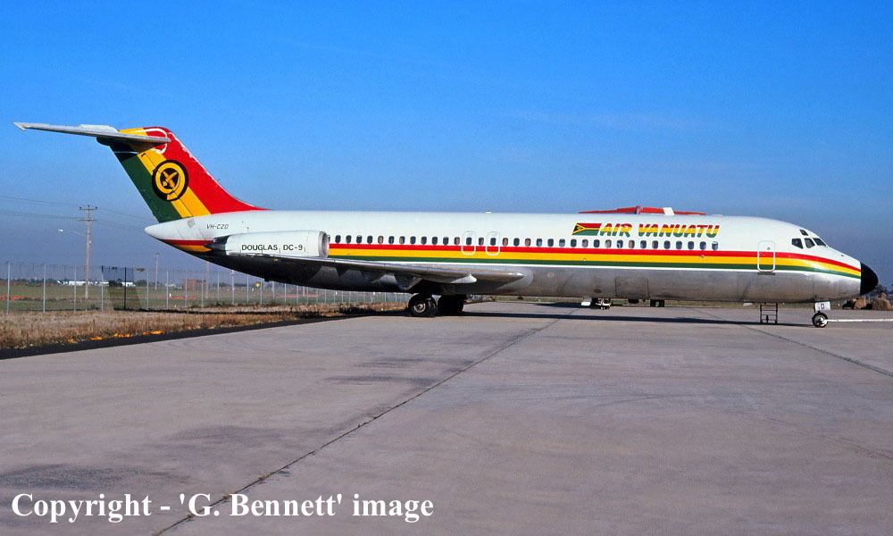 On This Day - June 21, 1982. The Ansett Airlines Douglas DC-9-31 VH-CZD that had been stored at Sydney (Kingsford Smith) in the 'Air Vanuatu' livery since May 23, was ferried to Melbourne (Tullamarine) for storage pending its sale to the United States Navy. |