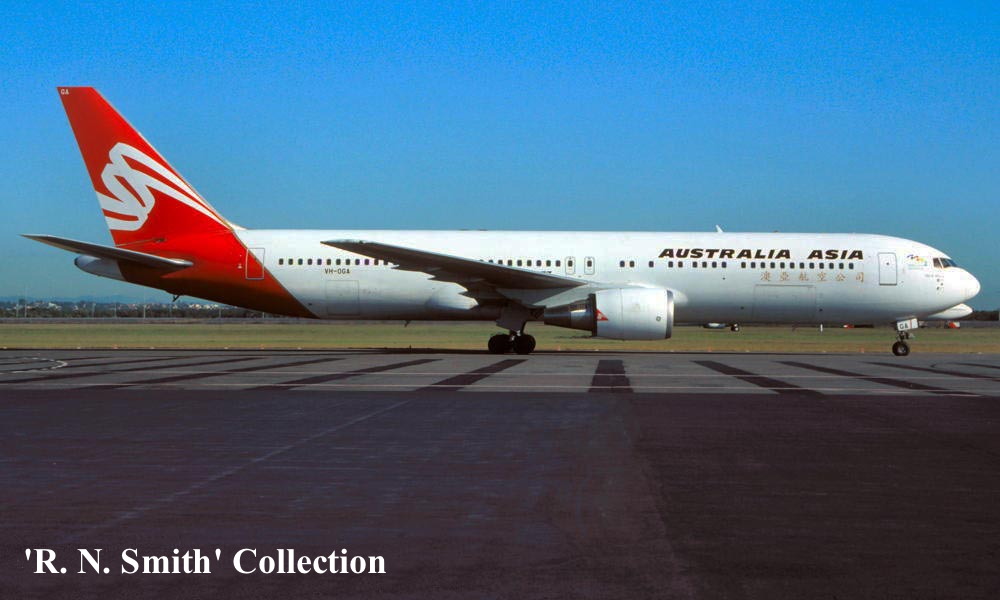 On This Day - September 25, 1991. The Qantas Airways Boeing 767-38ER VH-OGA, having been leased to Australia Asia Airlines, was rolled out at Sydney (Kingsford Smith) in the airline's livery. The aircraft retained the name 'City of Whyalla'. |