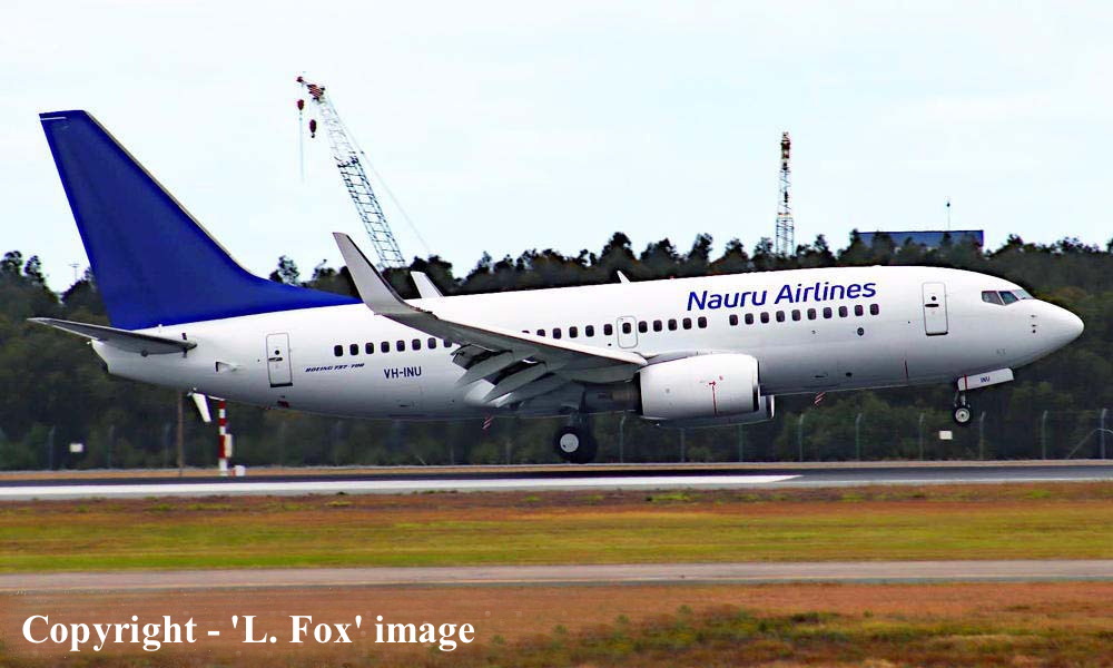 On This Day - September 27, 2021. The Nauru Airlines Boeing 737-79L VH-INU was ferried from Townsville to Brisbane in the airline's basic livery for storage. |