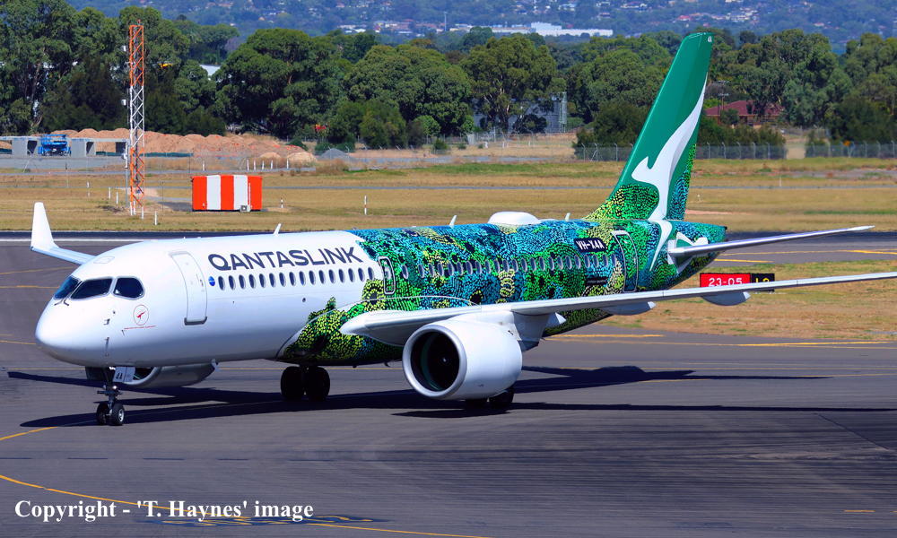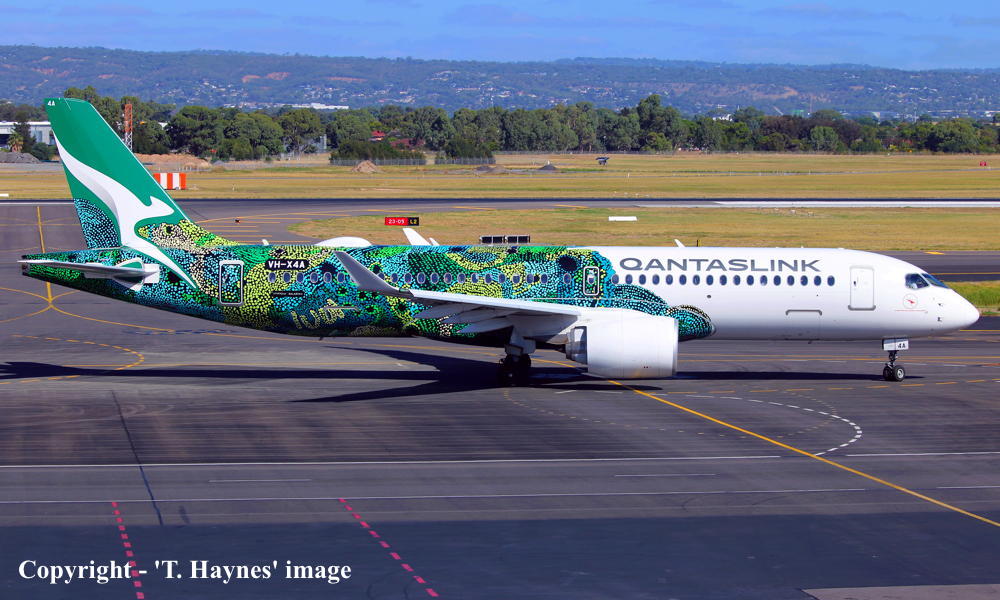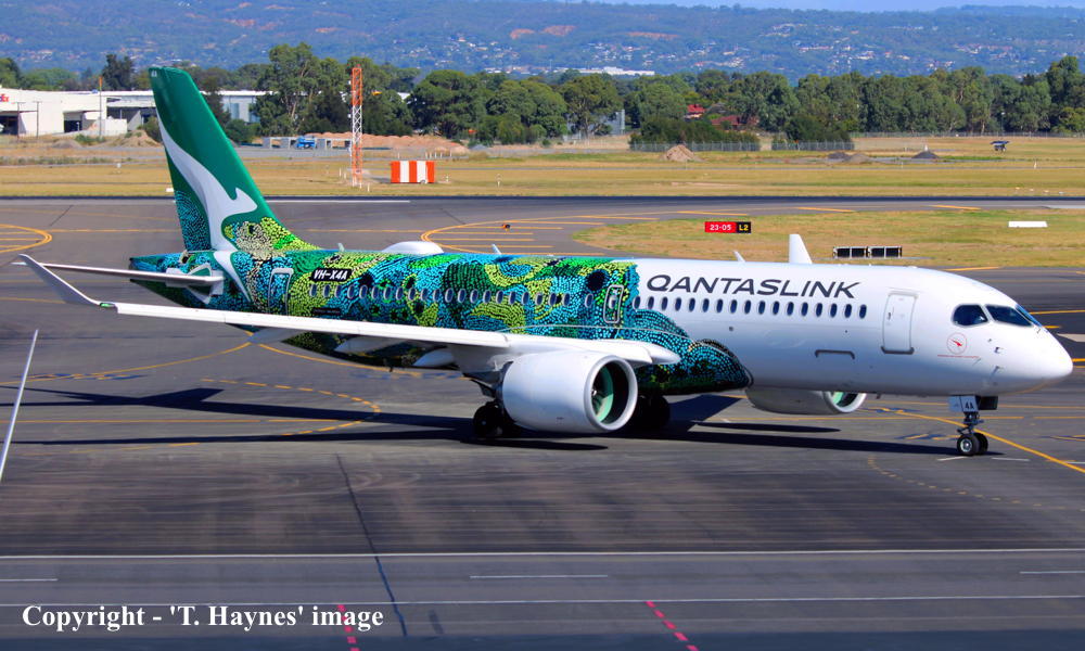 The original order for twenty aircraft was placed by Qantas Airways for operation by QantasLink - June 30, 2022 An additional nine airframes were added to the original order - June 16, 2023 These aircraft were to be built by Airbus Canada Limited Partnership at Montreal (Mirabel) This airframe was the first to be delivered from the original order It was observed at the Airbus Canada plant, Montreal (Mirabel) - November 14, 2023 Around 100 painters worked on the livery for some two weeks It was based on the artwork of senior Pitjantjatjara artist Maringka Baker It features over 20,000 dots, telling the 'Dreaming' story of two sisters who travelled across remote Australia together to find their way home The aircraft is named after the artwork: 'Minyma Hutjara Tjuhuapa' - The Two Sisters Creation Story It was observed undergoing engine runs and taxi-checks as 'ABK353' - November 22, 2023 It was observed undergoing taxi and rejected take-off checks as 'ABK353' - November 27, 2023 First flown at Montreal (Mirabel - 15:28 CEST) - (Mirabel - 18:22) as 'C-FPGP' - November 30, 2023 Flight time: 2 hours 54 minutes Powered by Pratt & Whitney PW1524G-3 engines Test flown at Montreal (Mirabel - 15:08 CEST) - (Mirabel - 17:25) as 'AIB353' - December 01, 2023 Flight time: 2 hours 17 minutes Test flown at Montreal (Mirabel - 12:28 CEST) - (Mirabel - 13:30) as 'AIB353' - December 05, 2023 Flight time: 1 hour 2 minutes Test flown at Montreal (Mirabel - 10:32 CEST) - (Mirabel - 13:07) as 'AIB353' - December 10, 2023 Flight time: 2 hours 35 minutes Entered onto the Australian Aircraft Register as VH-X4A - December 12, 2023 Registered to Qantas Airways Ltd, Sydney Leased to National Jet Systems Pty Ltd, Adelaide, South Australia as the registered operator for QantasLink Departed Montreal (Mirabel - 10:25 CEST) on the delivery flight to Australia as QJE6075 - December 16, 2023 It arrived Sydney (Kingsford Smith - 12:06 AEDT) on completion of the delivery flight - December 20, 2023 Delivery route: Montreal - Vancouver (night stop) - Honolulu (night stop) - Nadi (2 night stop) - Sydney It has carried out 69 check / training flights on the eastern seaboard - December 21, 2023 - February 21, 2024 Departed Sydney (Kingsford Smith - 13:51 AEDT) on a special 'inaugural flight' to Ayres Rock (15:11 CAT) as Flight QJE6215 - February 22, 2024 Flight time: 2 hours 50 minutes Operated Flight QJE6216 Ayres Rock (17:33 CAT) - Melbourne (Tullamarine - 22:29 AEDT) - February 22, 2024 Flight time: 3 hours 27 minutes Entered service Melbourne (Tullamarine - 12:33 AEDT) - Canberra (13:18 AEDT) as QF1268 - March 01, 2024 Operated the airline's inaugural 'Airbus A220' service from Melbourne (Tullamarine) - Coffs Harbour (18:38 AEDT) as QF1298 - October 28, 2024 Operated the airline's inaugural 'Airbus A220' service from Brisbane - Adelaide (West Beach) return - March 03, 2026 Flight QF1287 Brisbane (12:26 AEST) - Adelaide (15:21 local) Flight QF1288 Adelaide (16:35 local) - Brisbane (18:07 AEST) Current with QantasLink |