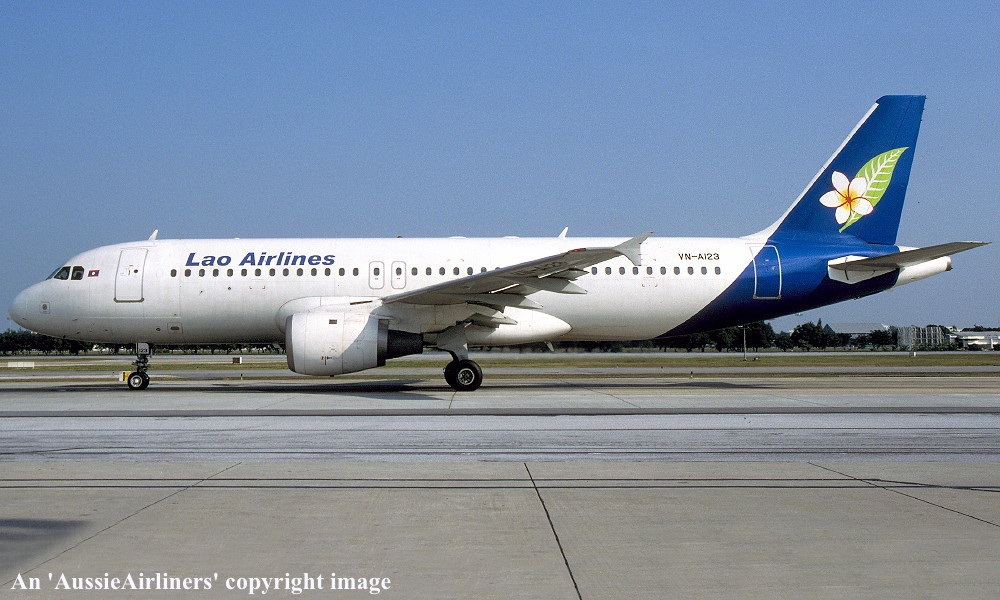 VN-A123. Lao Airlines - in the standard livery at Bangkok Airport, November 2003. (R. N. Smith Collection Copyright Image 0320-025.) |