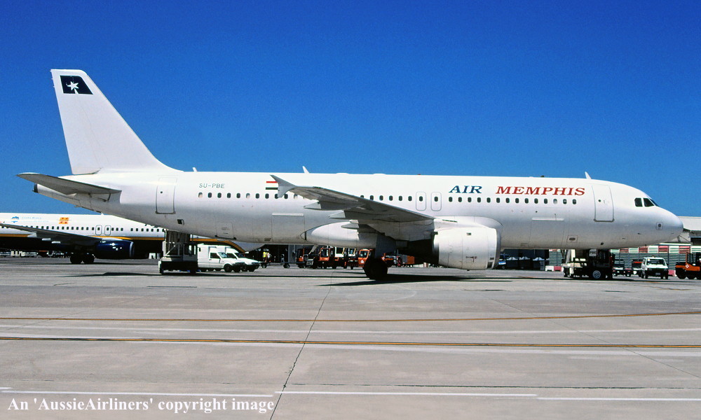 SU-PBE. Air Memphis - in the standard livery at an unknown airport, March 2006. (R. N. Smith Collection Copyright Image 0320-614.) |