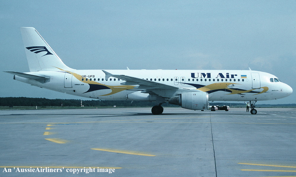 UR-UFB. Um Air - 'Mary-Lyn 1' in the standard livery at an unknown airport, April 2004. (R. N. Smith Collection Copyright Image 0320-072.) |