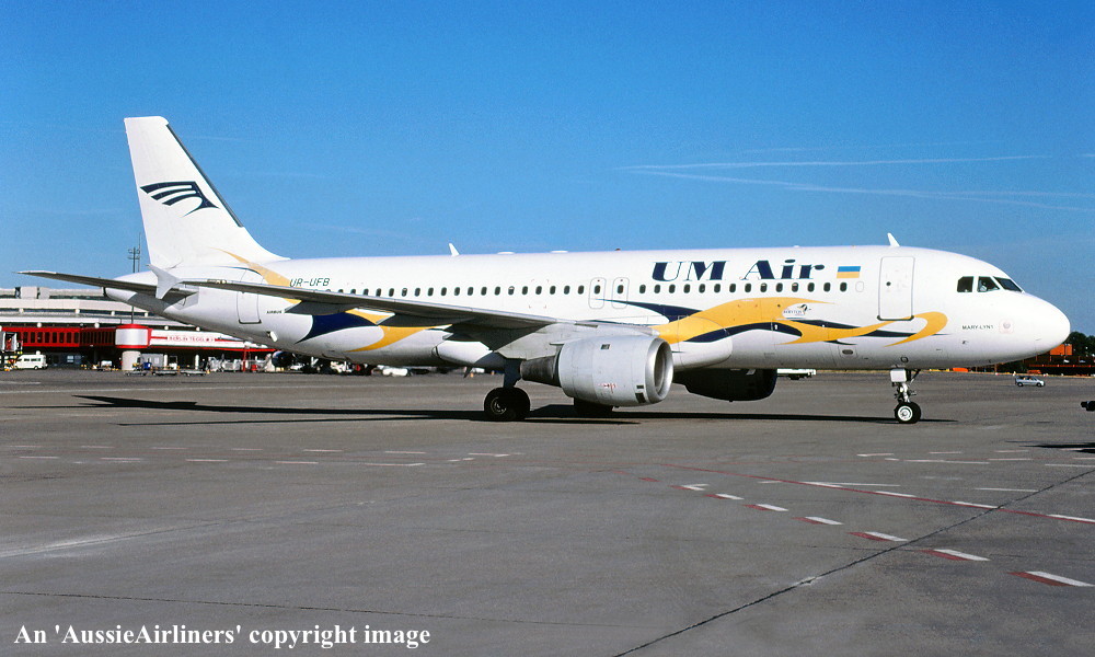 UR-UFB. Um Air - 'Mary-Lyn 1' in the standard livery at an unknown airport, February 2004. (R. N. Smith Collection Copyright Image 0320-041.) |