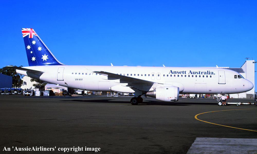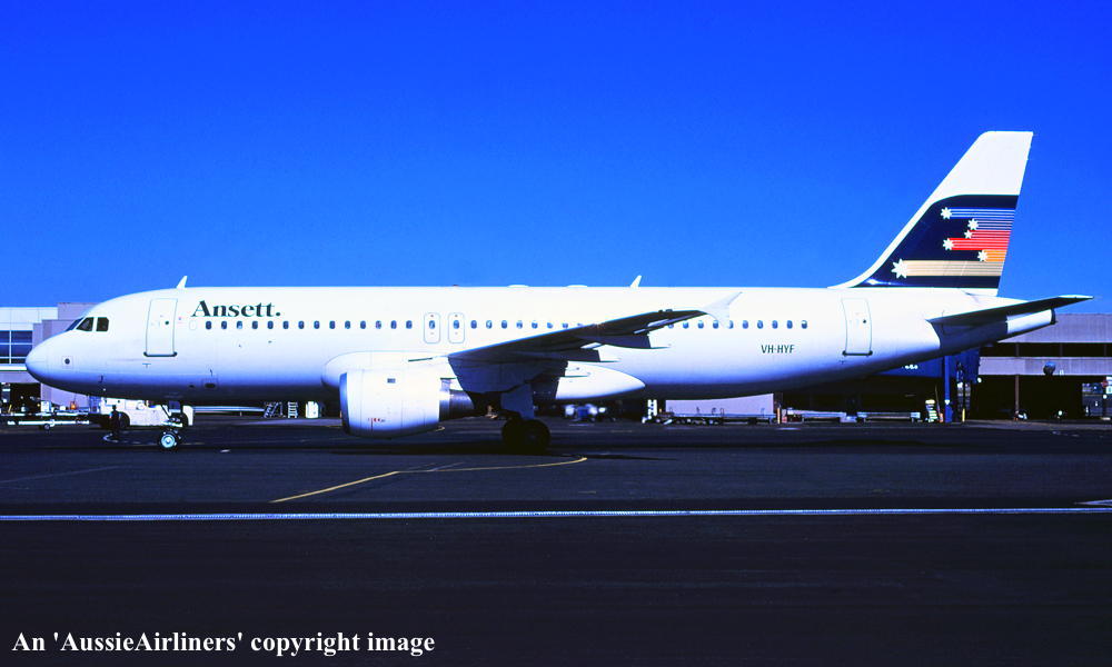 VH-HYF. Airbus A320-211. c/n 027. Was also registered as: N270SE; UR-UFB. |