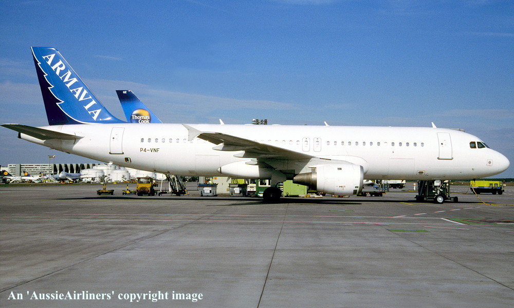 P4-VNF. Armavia - in the original livery at Paris Orly Airport, December 2002. (R. N. Smith Collection Copyright Image 0320-012.) |