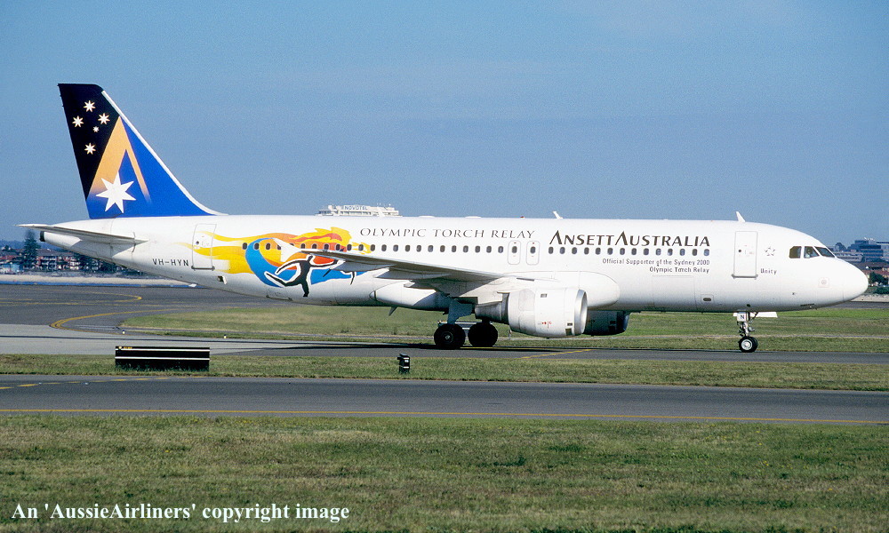 VH-HYN. Airbus A320-211. c/n 0726. Was also registered as: N726NS; P4-VNF; EK-32007; YL-BCB; CS-TQS; EI-FAI; N281LF; UR-YAD; EK-32002. |