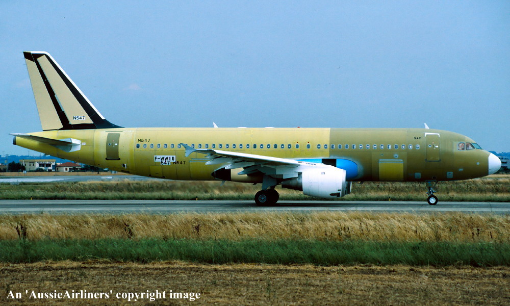 F-WWIU. Ansett Australia - in the 'primer' livery at Toulouse Airport, July 1995. (R. N. Smith Collection Copyright Image 0320-045.) |