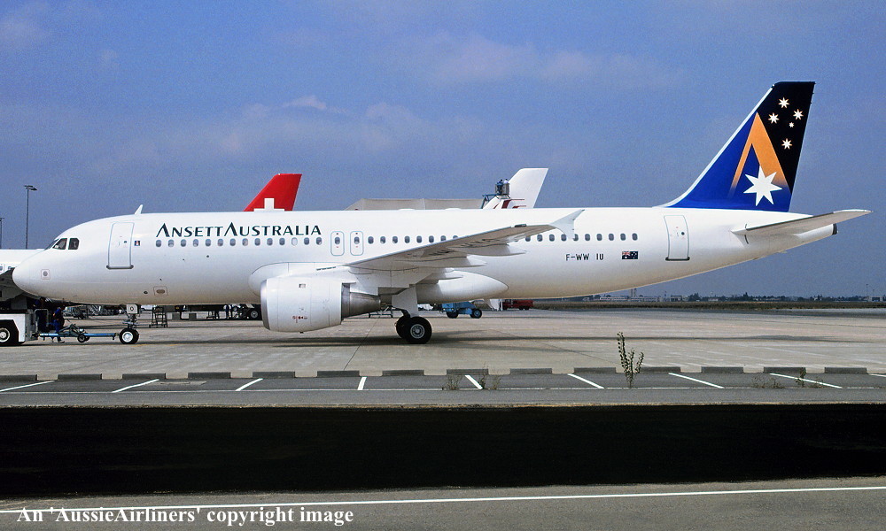 F-WWIU. Ansett Australia - in the 'Starmark' livery at Toulouse Airport, July 1995. (R. N. Smith Collection Copyright Image 0320-612.) |