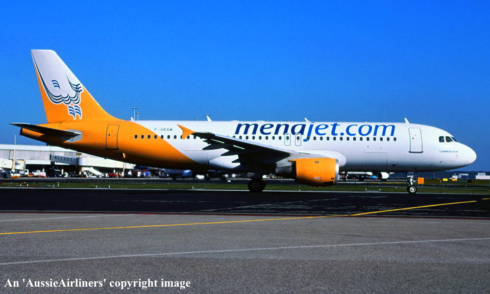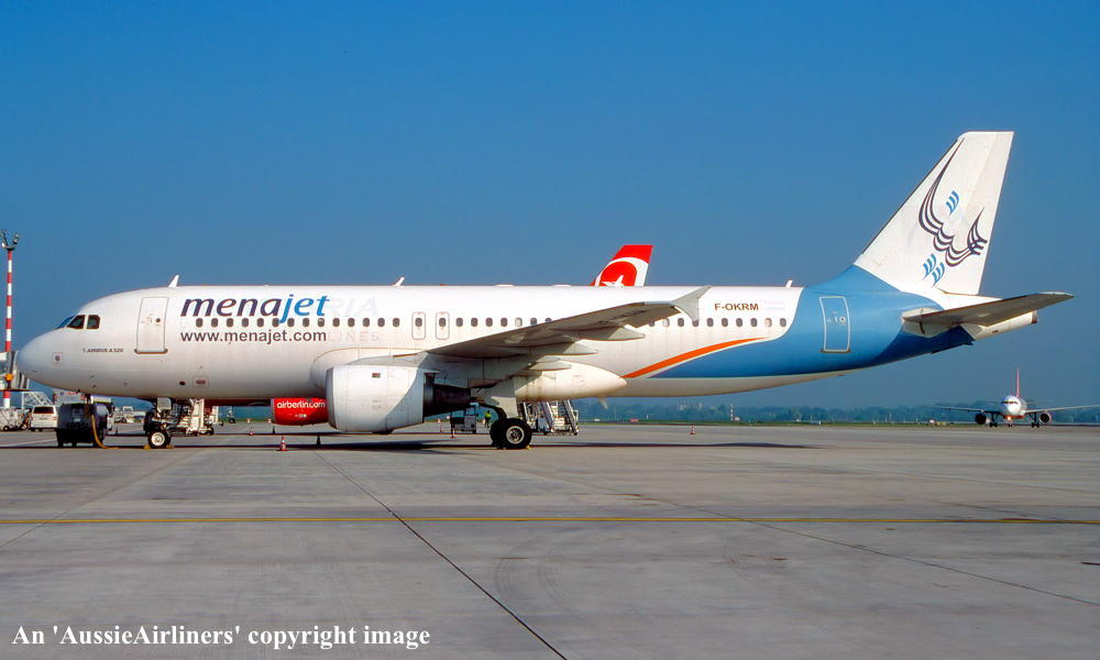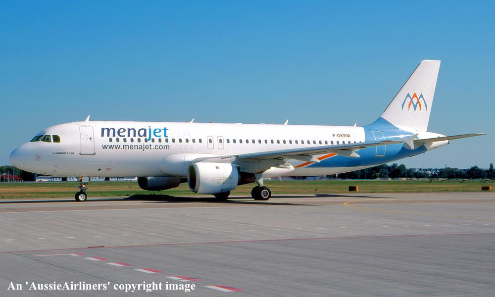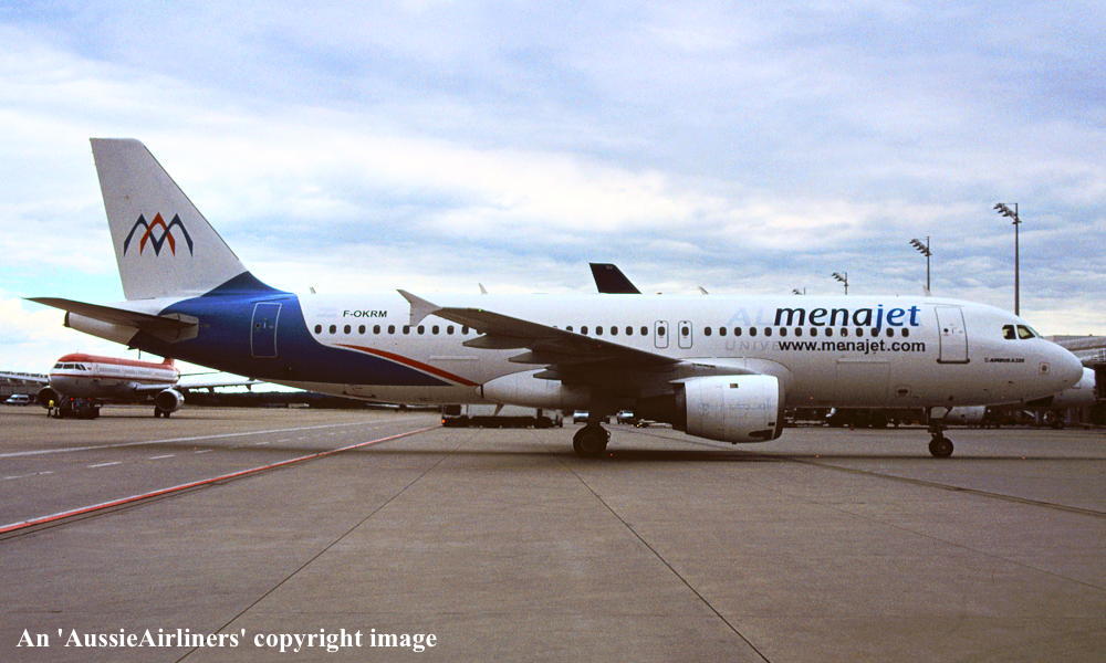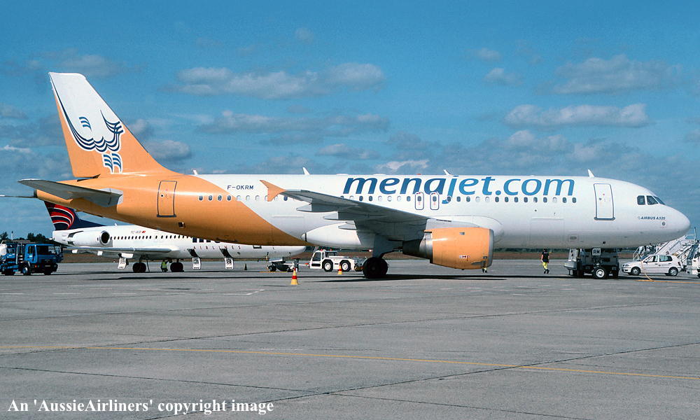 F-OKRM. Menajet - in the revised livery at Paris Charles de Gualle Airport, August 2008. (R. N. Smith Collection Copyright Image 0320-154.) |