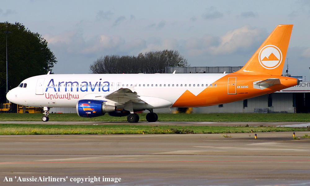 EK-32010. Armavia - in the standard livery at an unknown airport, November 2004. (R. N. Smith Collection Copyright Image 0320-032.) |