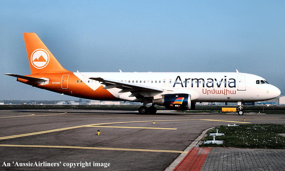 EK-32010. Armavia - in the standard livery at Paris Charles de Gualle Airport, July 2005. (R. N. Smith Collection Copyright Image 0320-060.) |