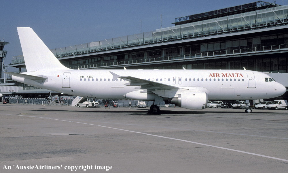 9H-AED. Air Malta - in the all-white livery at Paris Orly Airport, August 2003. (R. N. Smith Collection Copyright Image 0320-004.) |