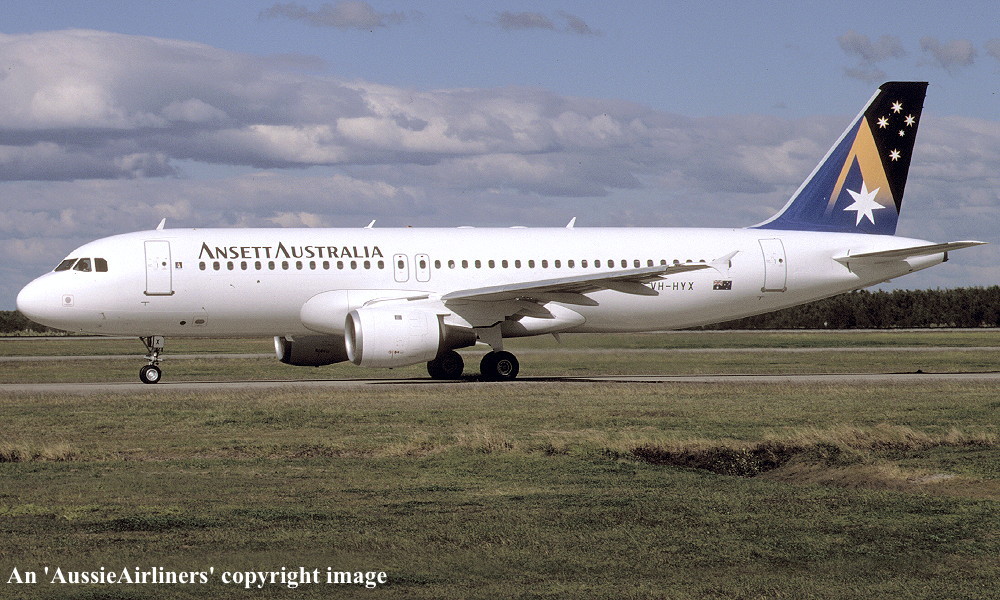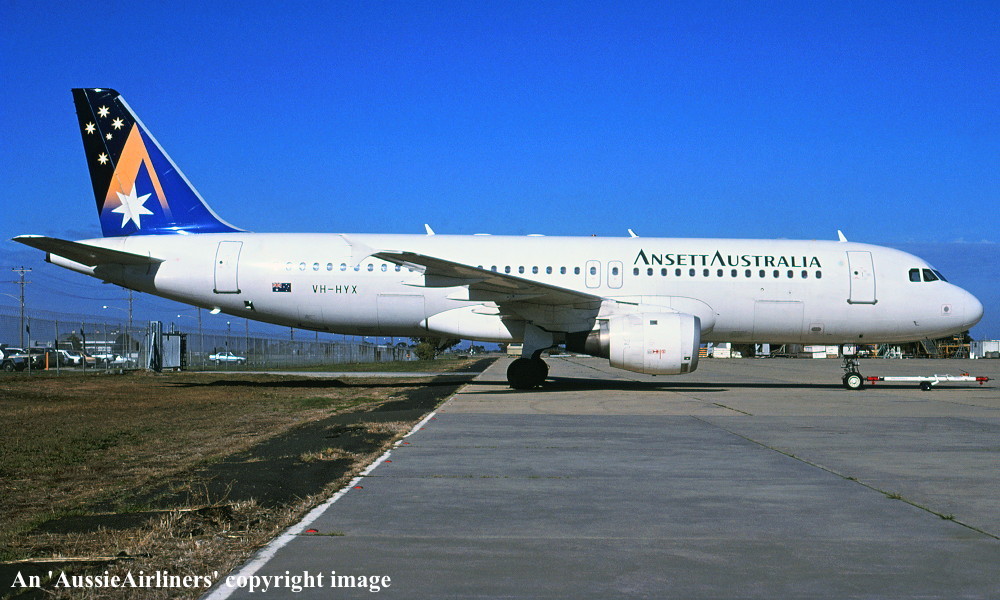 VH-HYX. Airbus A320-211. c/n 0288. Was also registered as: TC-ONA; SE-RCC; 9H-AED; TC-FBF; N248AT. |