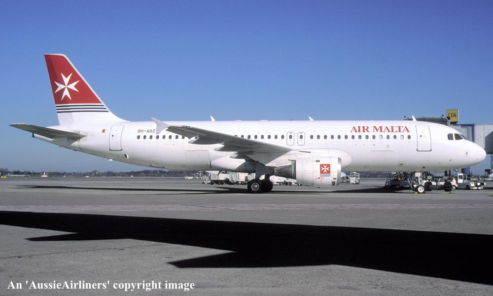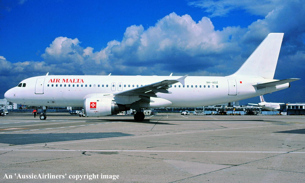 9H-ADZ. Air Malta - in the 'all-white' livery at Paris Orly Airport, April 2002. (R. N. Smith Collection Copyright Image 0321-189.) |