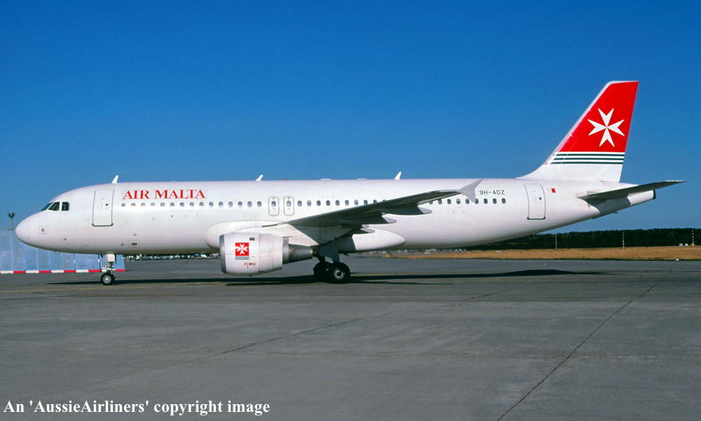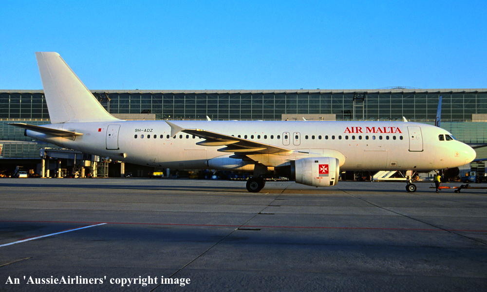 9H-ADZ. Air Malta - in the standard livery at Lisbon Airport, March 2003. (R. N. Smith Collection Copyright Image 0320-003.) |