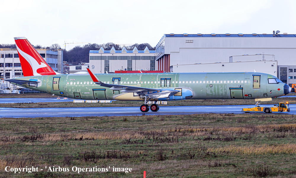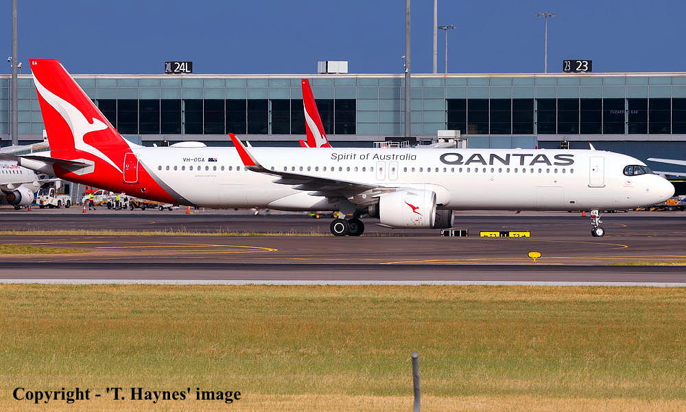 This aircraft was ordered new by Qantas Airways - ? It was the airline's 1st Airbus A321-271(XLR) It was built by Airbus in Germany at the Hamburg (Finkenwerder) plant - 2024 / 2025 Powered by International Aero Engine PW1133GAR-JM turbo-fan engines It was observed at Hamburg (Finkenwerder) as 'D-AXXE' in primer and without engines installed - November 25, 2024 It was observed at Hamburg (Finkenwerder) in the 'Qantas' livery and without engines installed - February 15, 2025 Entered onto the Australian Aircraft Register as VH-OGA - March 17, 2025 Registered to Qantas Airways Limited, Mascot, Sydney It was observed at Hamburg (Finkenwerder) in the 'Qantas' livery and with the engines installed - March 21, 2025 Engine run, taxi check and perforrmed as '12323R2' - April 04, 2025 Engine run, taxi check and rejected take-off perforrmed (08:26 UTC) as '12323R3' - April 08, 2025 First test flight (T1) flown at Hamburg (13:39 - 17:07 UTC) as 'D-AXXE' (AIB323A) - April 08, 2025 Engine run and taxi check performed as 'D-AXXE' - May 14, 2025 Taxi-check and rejected take-off performed - June 04, 2025 Second test flight (T2) flown at Hamburg (07:04 - 08:18 UTC) as 'D-AXXE' (AIB323B) - June 05, 2025 Third test flight (T3) flown at Hamburg (Finkenwerder 07:04 - 08:18 UTC) as 'D-AXXE' (AIB323C) - June 17, 2025 Route: Hamburg (Finkenwerder) - Hamburg (Helmut Schmidt) - Hamburg (Finkenwerder) Fourth test flight (C1) flown at Hamburg (Finkenwerder 07:19 - 09:18 UTC) as 'D-AXXE' (AIB323CD) - June 24, 2025 Route: Hamburg (Finkenwerder) - Hamburg (Helmut Schmidt) - Hamburg (Finkenwerder) Accepted by Qantas Airways at Hamburg (Finkenwerder) - June 30, 2025 The aircraft was named 'Great Ocean Road' Departed Germany (Hamburg - 07:01 UTC) on the delivery flight to Australia as QF6041 - June 30, 2025 It arrived at Sydney (Kingsford Smith - 09:45 AEST) on completion its flight from Germany - July 02, 2025 Delivery route: Hamburg (Finkenwerder) - Bangkok - Sydney Flight time: Hamburg - Bangkok (11 hours 7 minutes) - Bangkok - Sydney (9 hours 10 minutes) Prior to entering commercial service it operated approximately 242 test and training flights Operated its first revenue service as Flight QF1321 - September 25, 2025 This flight number was used to celebrate the first commercial service of this new aircraft type Route: Sydney (Kingsford Smith - 09:12 AEST) - Melbourne (Tullamarine - 11:32 AEST) Before landing at Melbourne the aircraft made a double circuit over the Great Ocean Road at 3,000 feet Current with Qantas Airways, Australia |