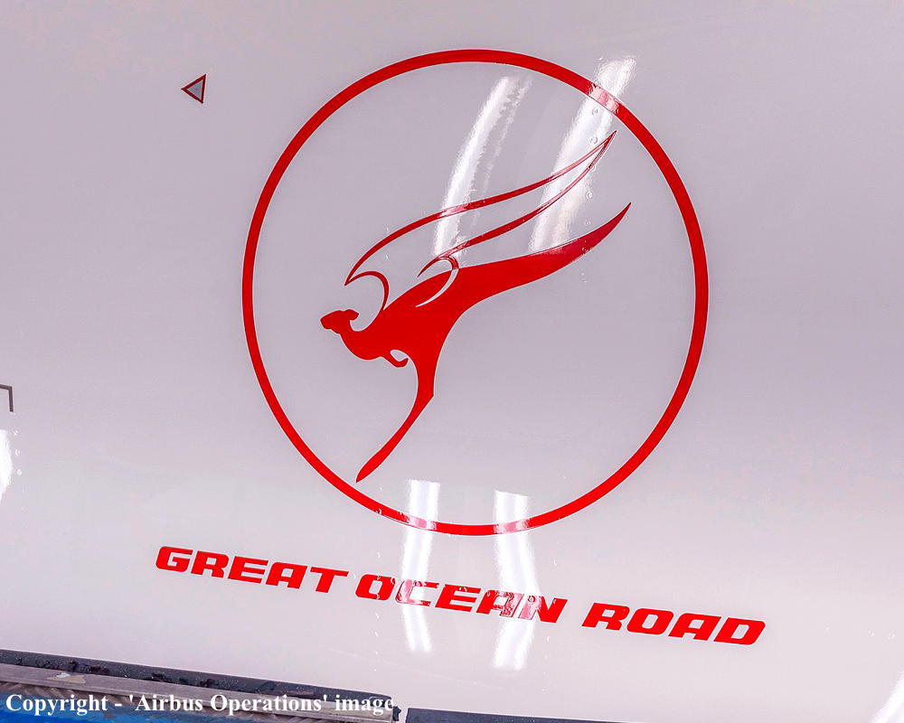 D-AXXE. Qantas Spirit of Australia - 'Great Ocean Road' on roll-out at the Airbus plant at Hamburg Finkenwerder Airport, February 2025. (Airbus Operations GmbH Copyright Image 0321-667.) |