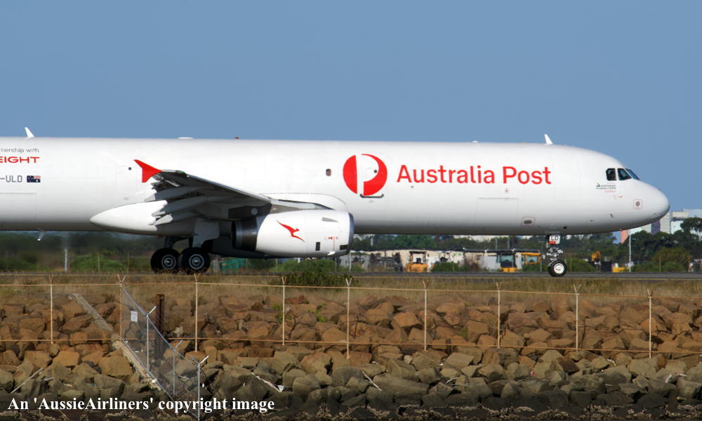 VH-ULD. Australia Post / QantasFreight - in the 'Silver Roo' livery at Sydney Kingsford Smith Airport, October 21, 2020. (J. Wong Copyright Image 0321-179.) |