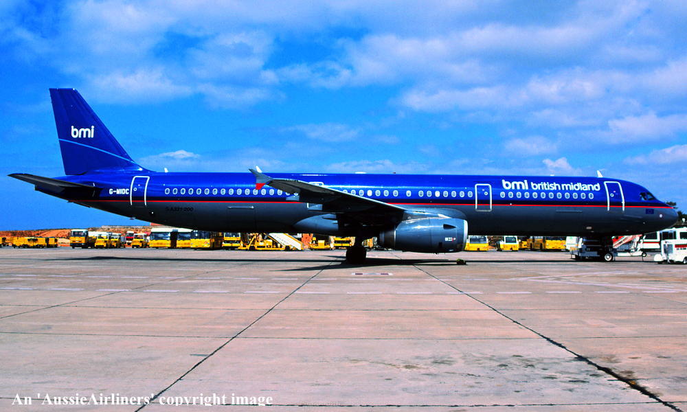 G-MIDC. British Midland - in the standard livery at an unknown airport, June 2002. (R. N. Smith Collection Copyright Image 0321-239.) |