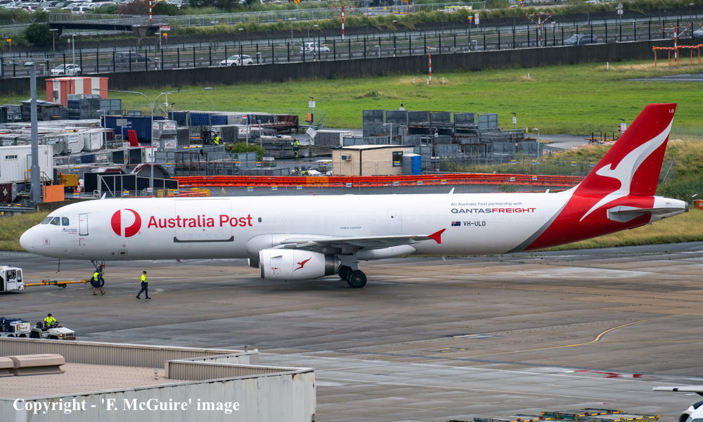VH-ULD. Australia Post / QantasFreight - in the 'Silver Roo' livery at Sydney Kingsford Smith Airport, January 20, 2023. (F. McGuire Copyright Image 0321-379.) |