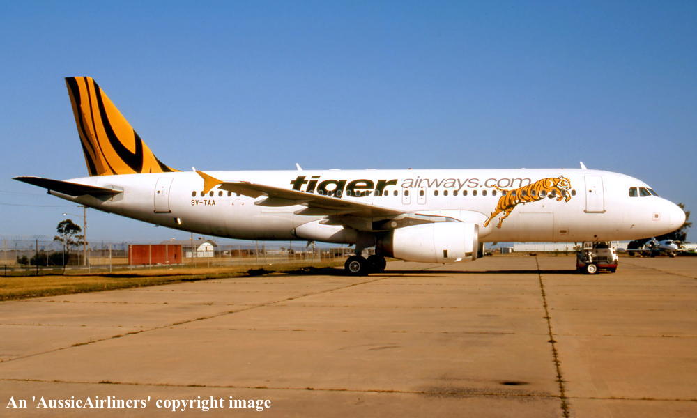 9V-TAA. Tiger Airways - in the standard livery at Melbourne Tullamarine Airport, November 2007. (R. N. Smith Collection Copyright Image 0320-159.) |