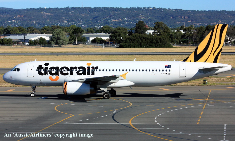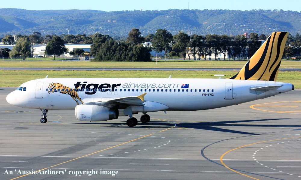 VH-VNG. Tiger Airways - in the standard livery at Adelaide West Beach Airport, July 10, 2013.