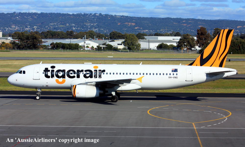 VH-VNG. Tigerair - in the standard livery at Adelaide West Beach Airport, January 25, 2016.