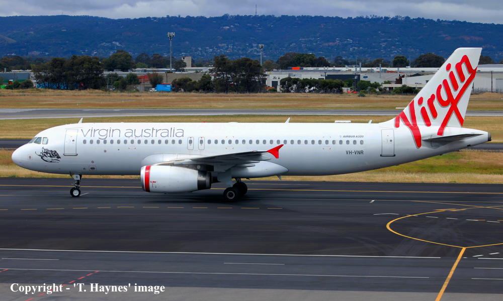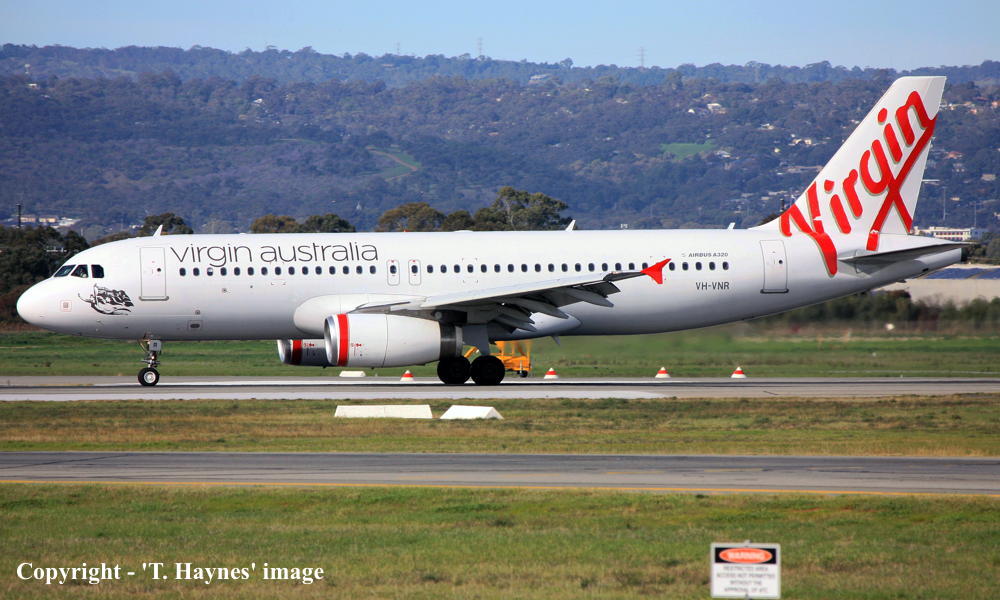 VH-VNR. Virgin Australia - in the standard livery at Adelaide West Beach Airport, July 10, 2022. (T. Haynes Copyright Image 0321-407.) |