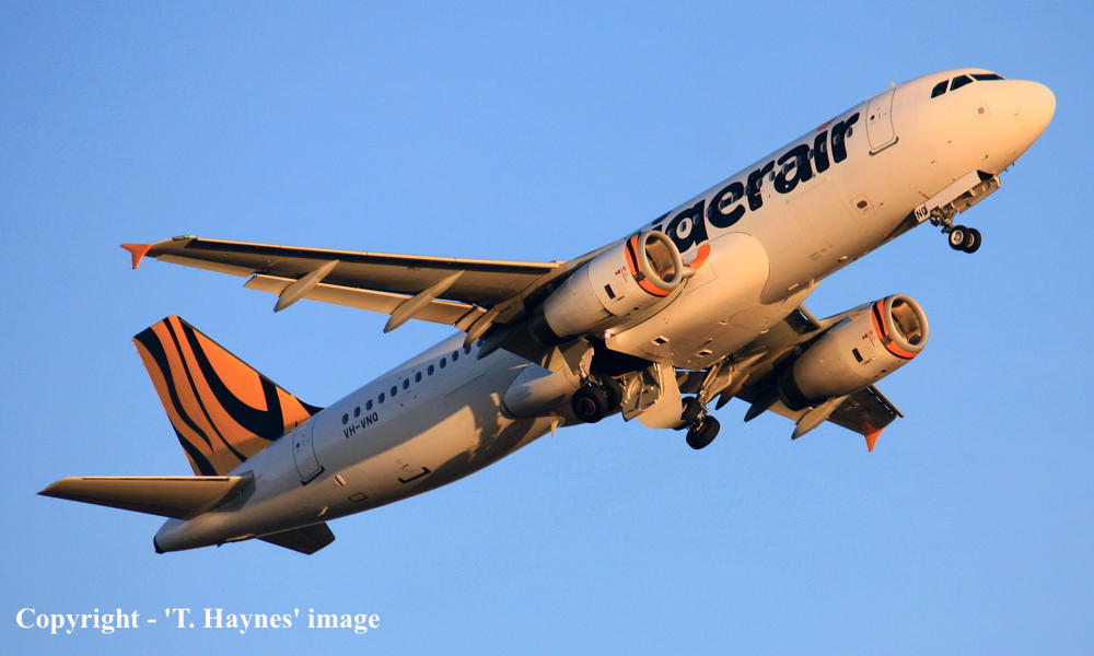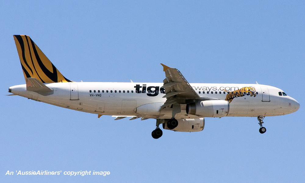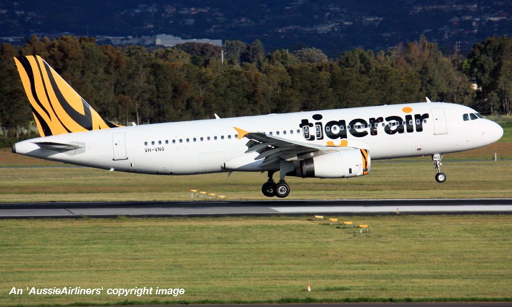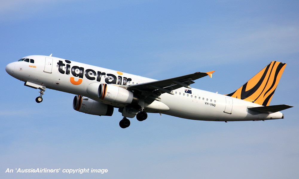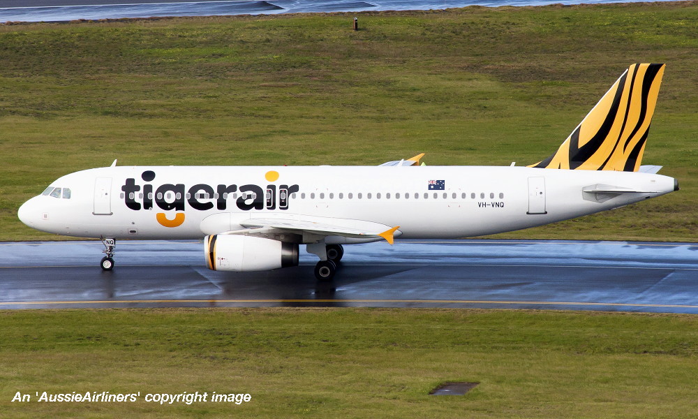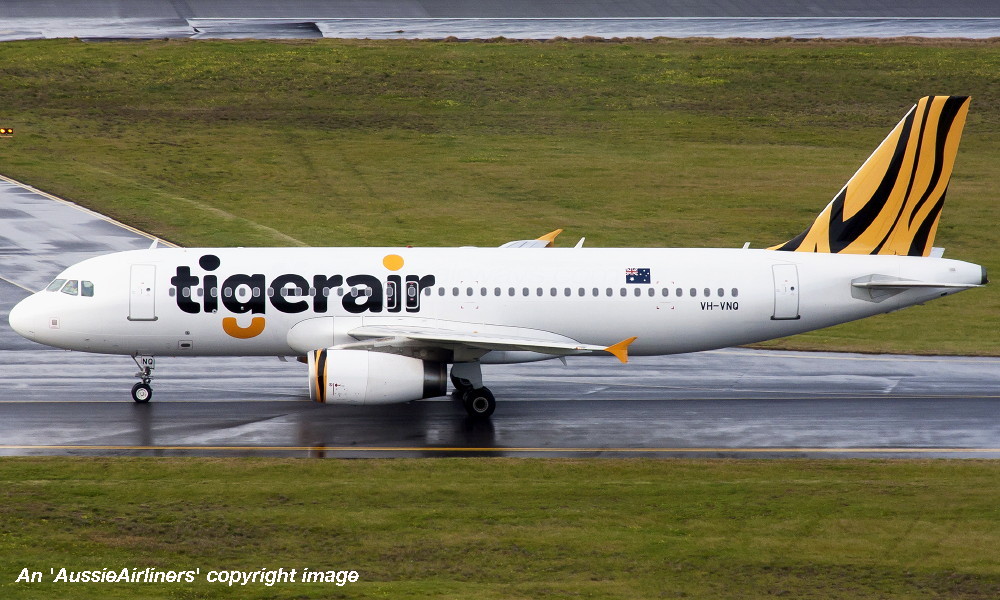 VH-VNQ. Tigerair - in the standard livery at Melbourne Tullamarine Airport, July 03, 2013. (P. Finnigan Copyright Image 0320-300.) |