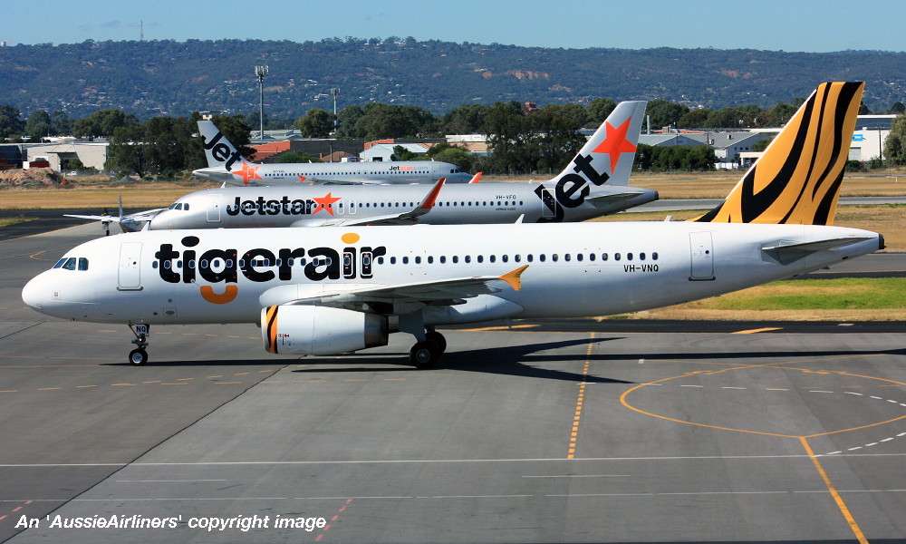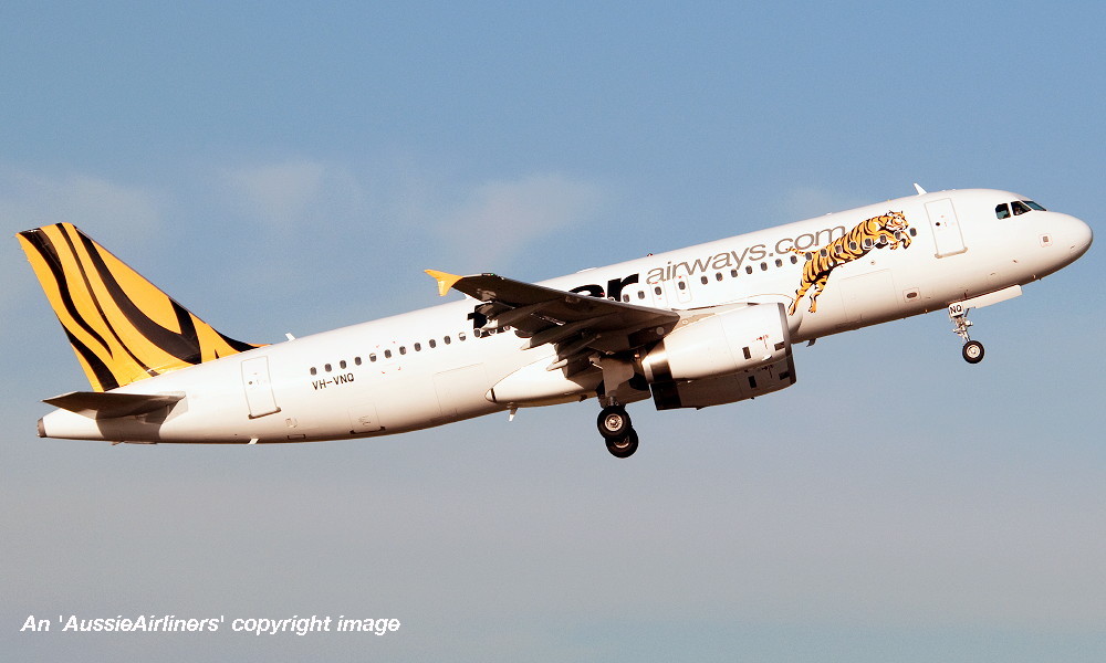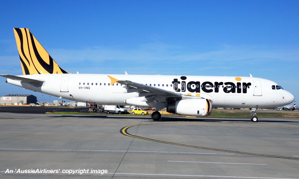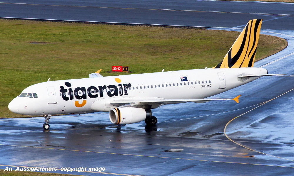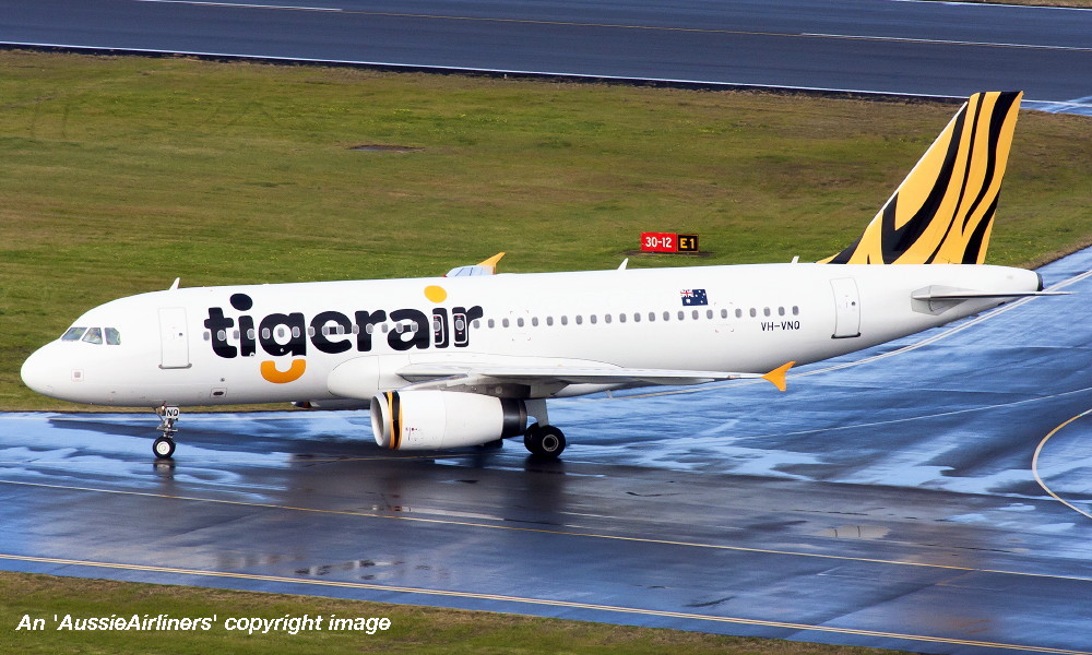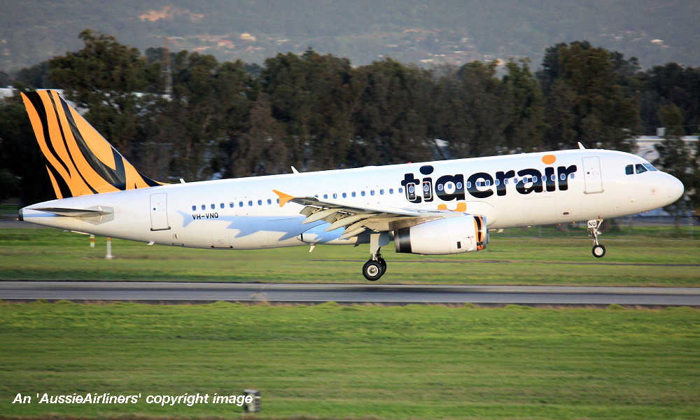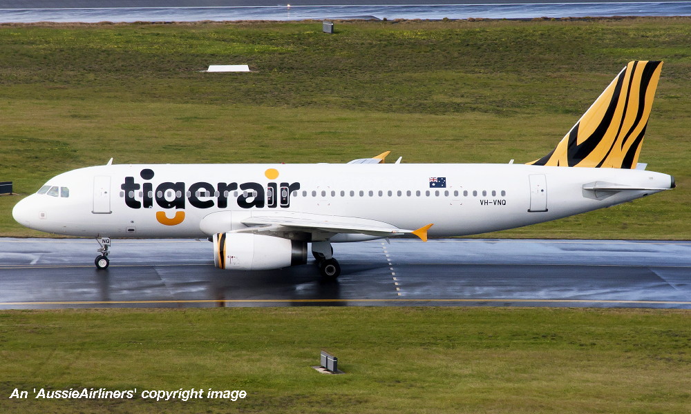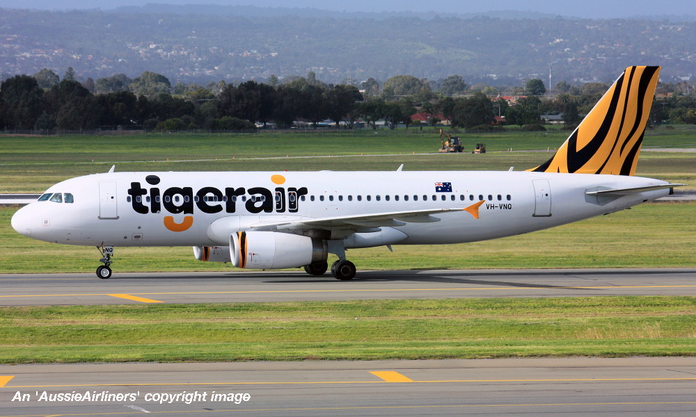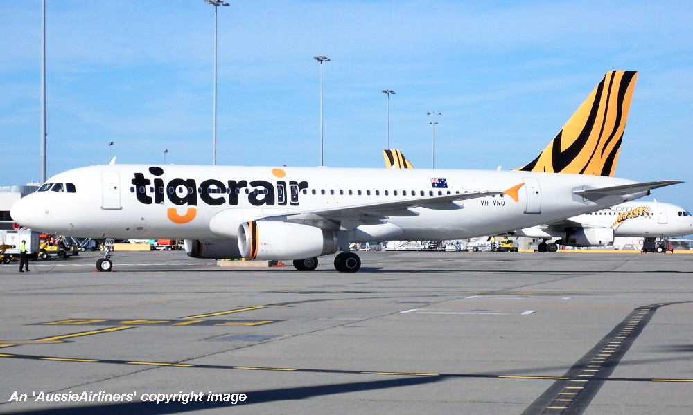 VH-VNQ. Tigerair - in the standard livery at Melbourne Tullamarine Airport, July 03, 2013. (P. Finnigan Copyright Image 0320-299.) |