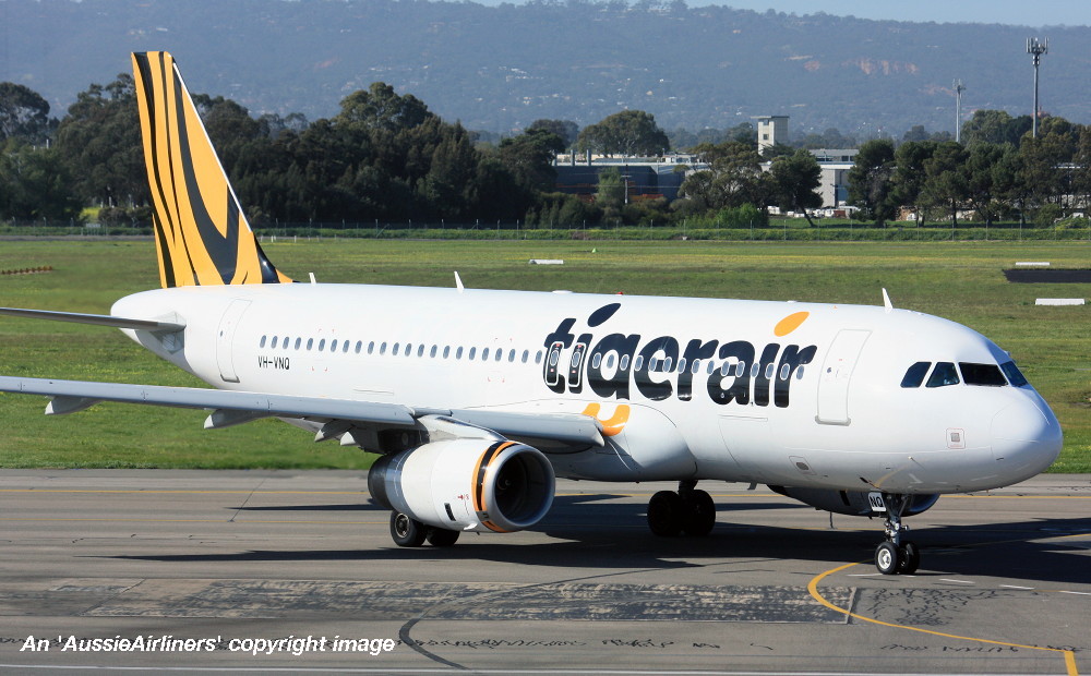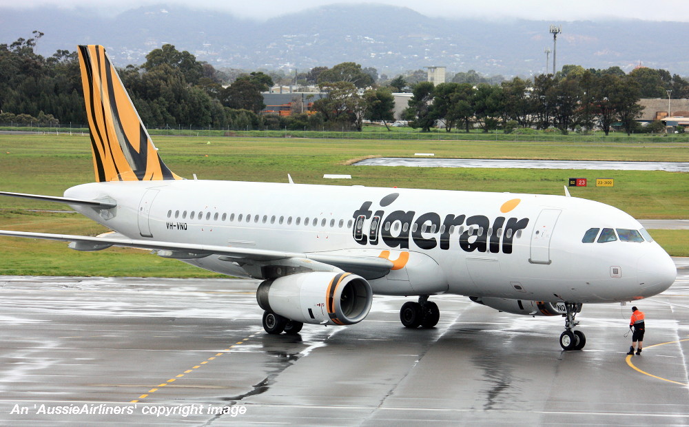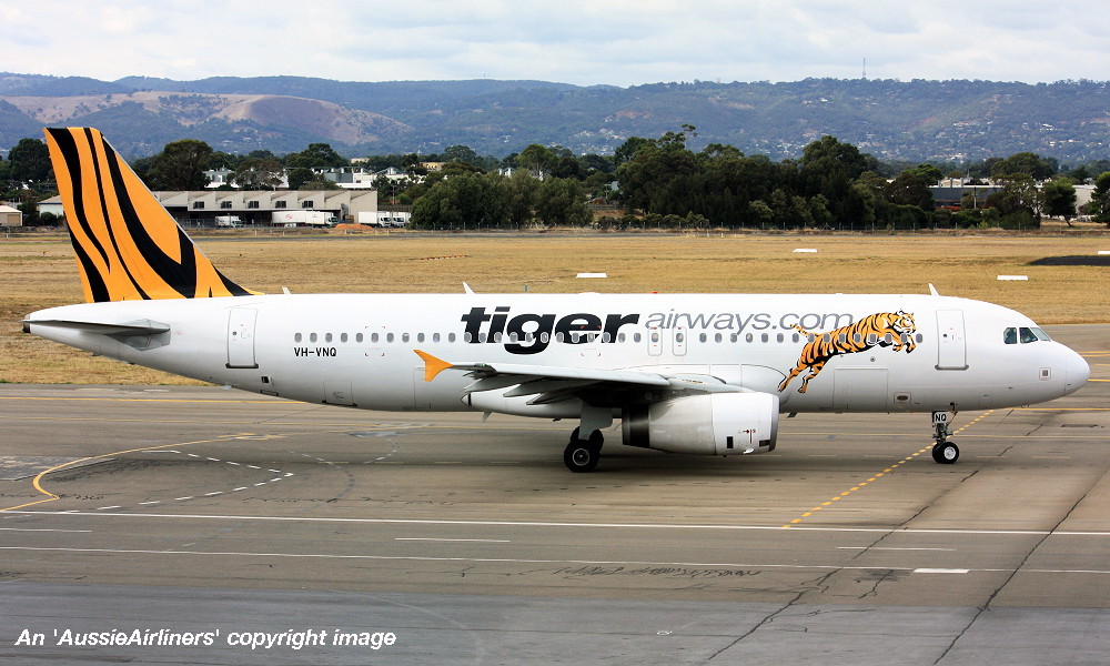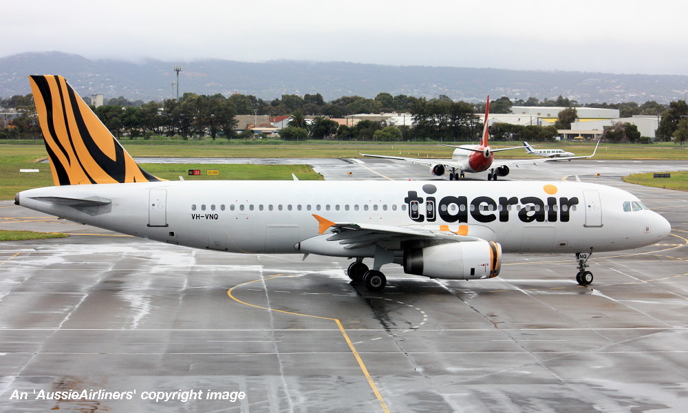 VH-VNQ. Tigerair - in the standard livery at Adelaide West Beach Airport, August 02, 2013. (R. Brown Copyright Image 0320-389.) |
