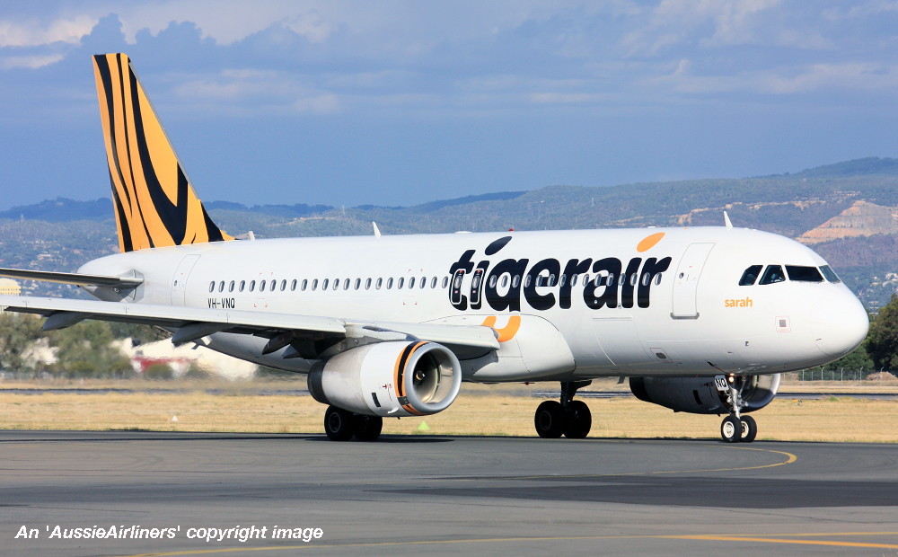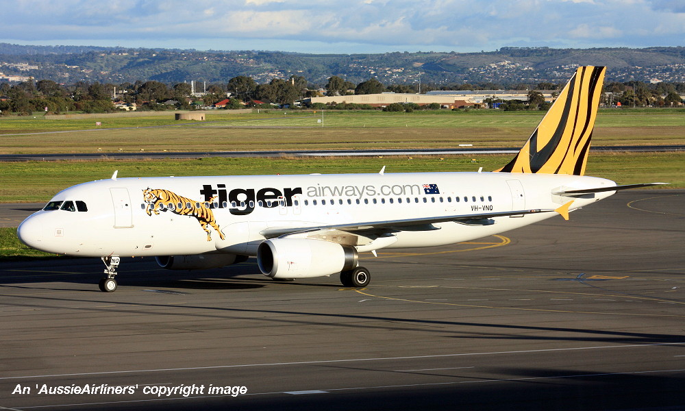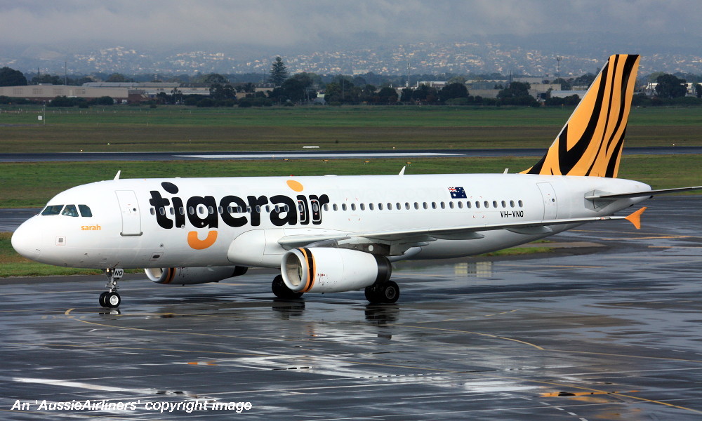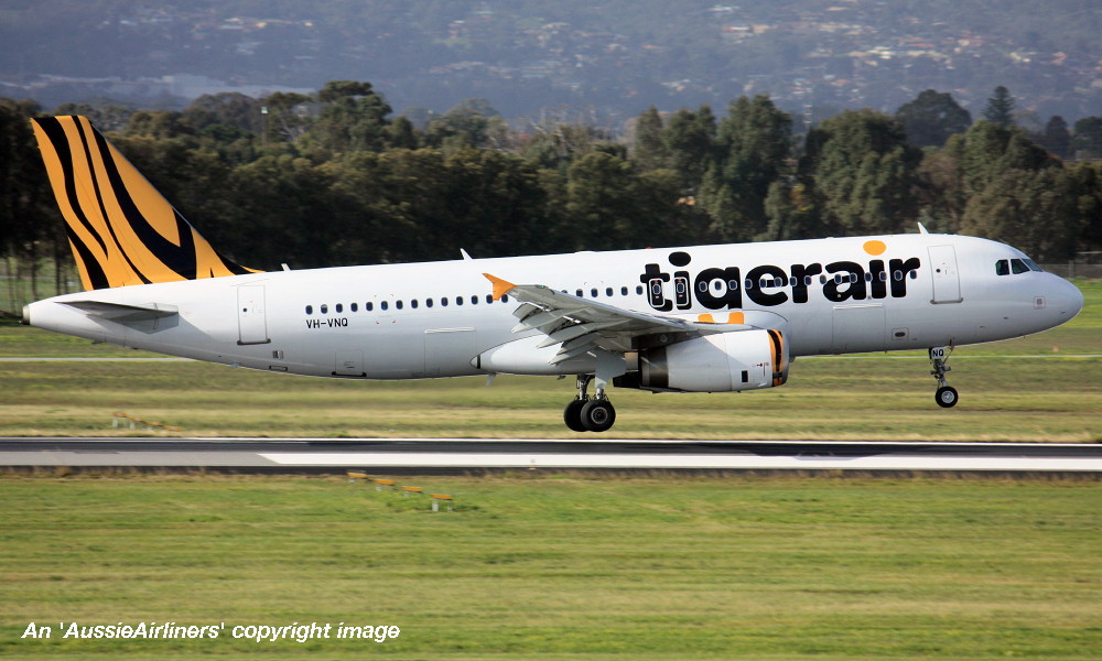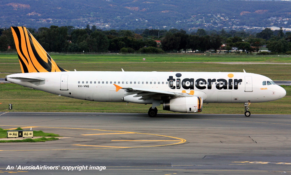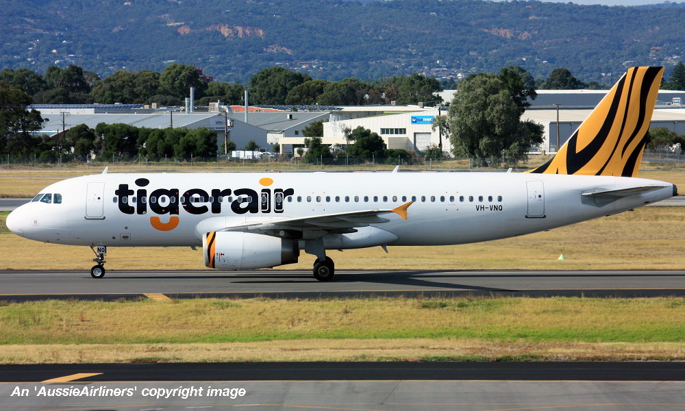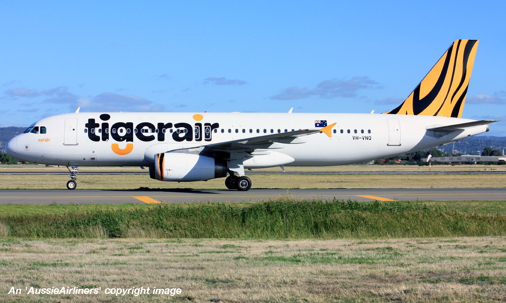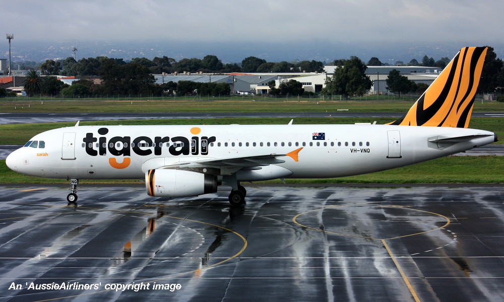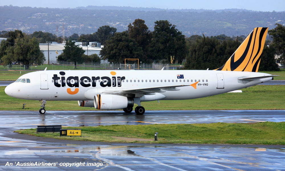 VH-VNQ. Tigerair - in the standard livery at Adelaide West Beach Airport, August 02, 2013. (R. Brown Copyright Image 0320-390.) |
