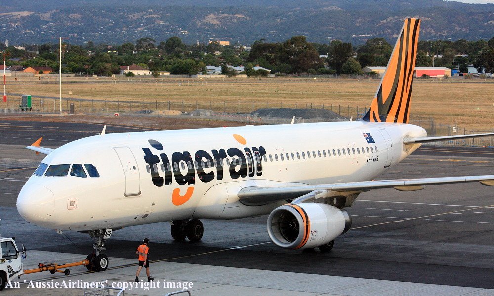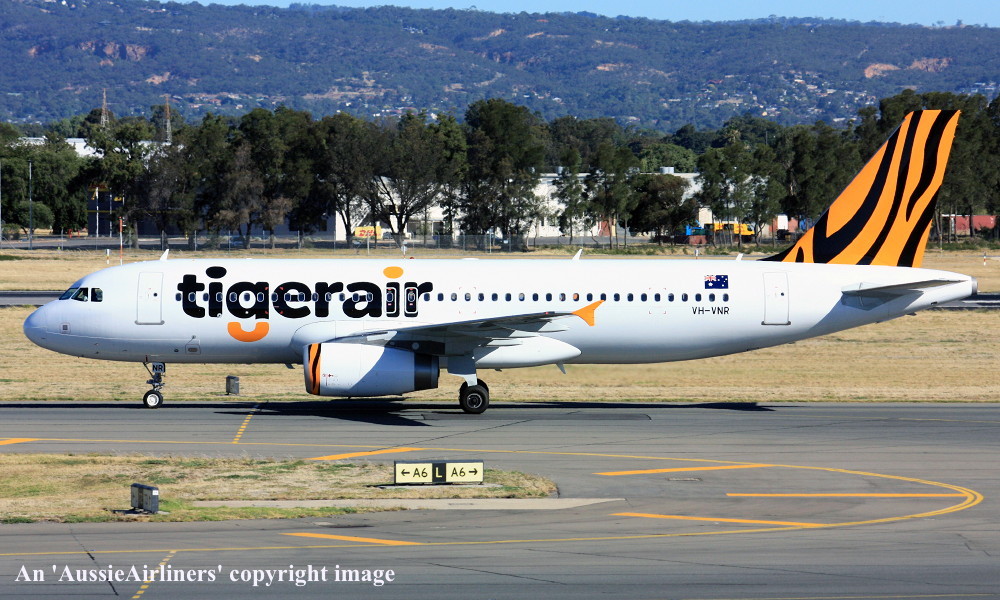 VH-VNR. Tigerair - in the standard livery at Adelaide West Beach Airport, March 23, 2014. (T. Haynes Copyright Image 0320-660.) |
