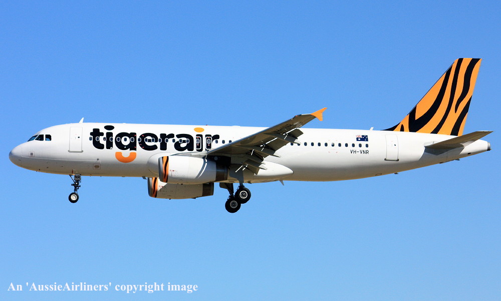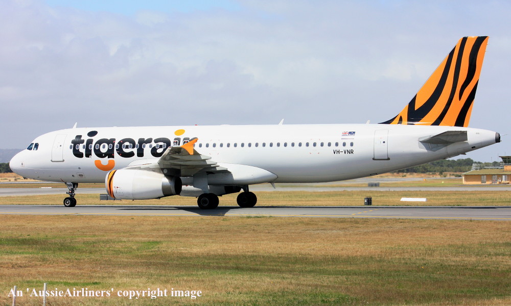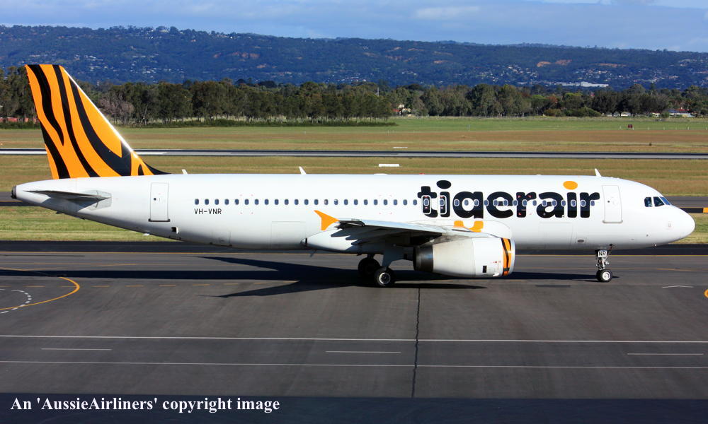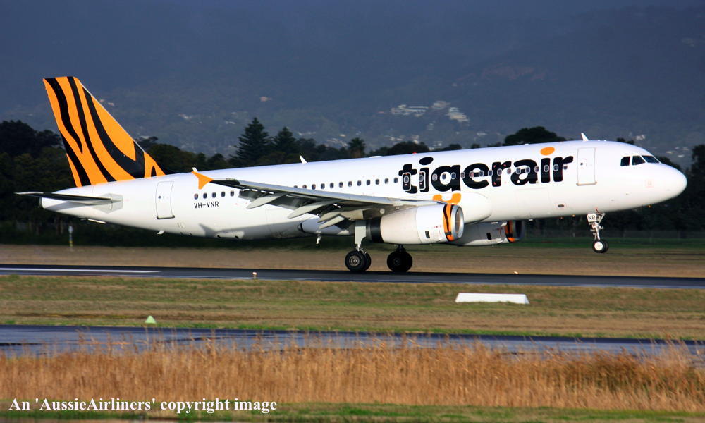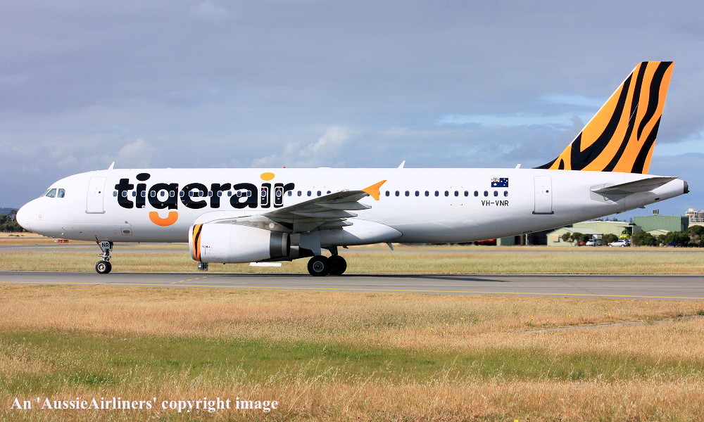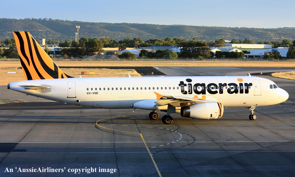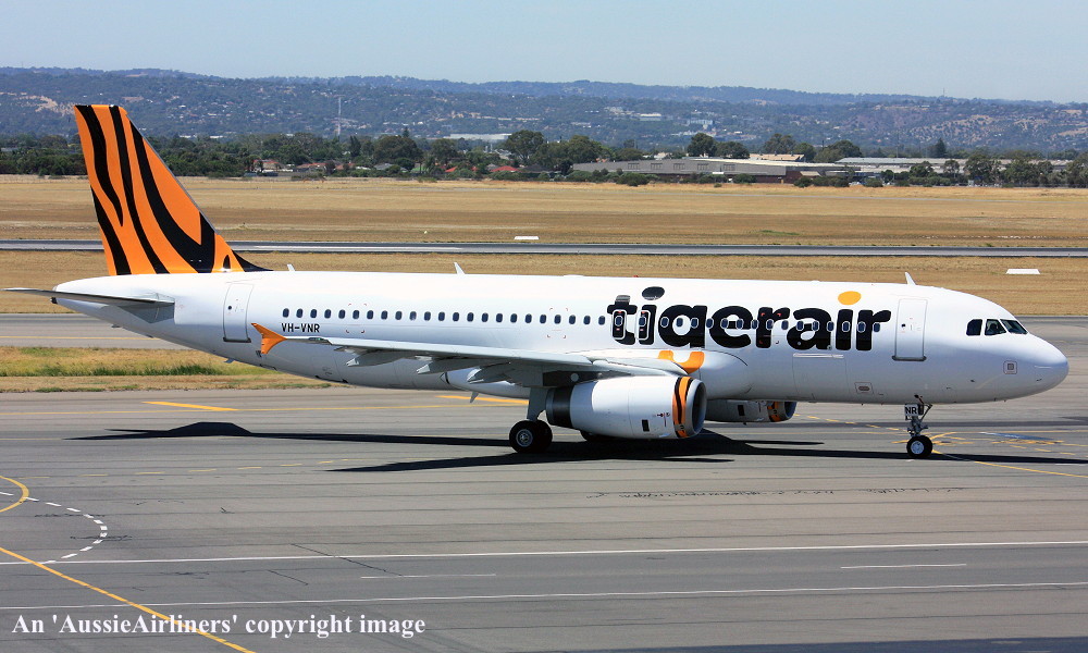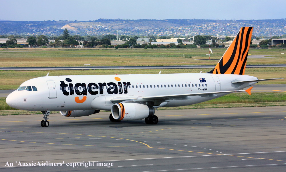 VH-VNR. Tigerair - in the standard livery at Adelaide West Beach Airport, January 11, 2014. (T. Haynes Copyright Image 0320-657.) |