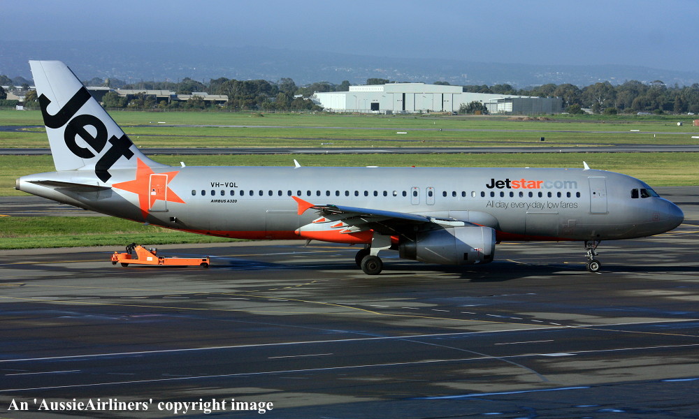 VH-VQL. Jetstar - in the original livery at Adelaide West Beach Airport, July 13, 2015. (T. Haynes Copyright Image 0320-837.) |